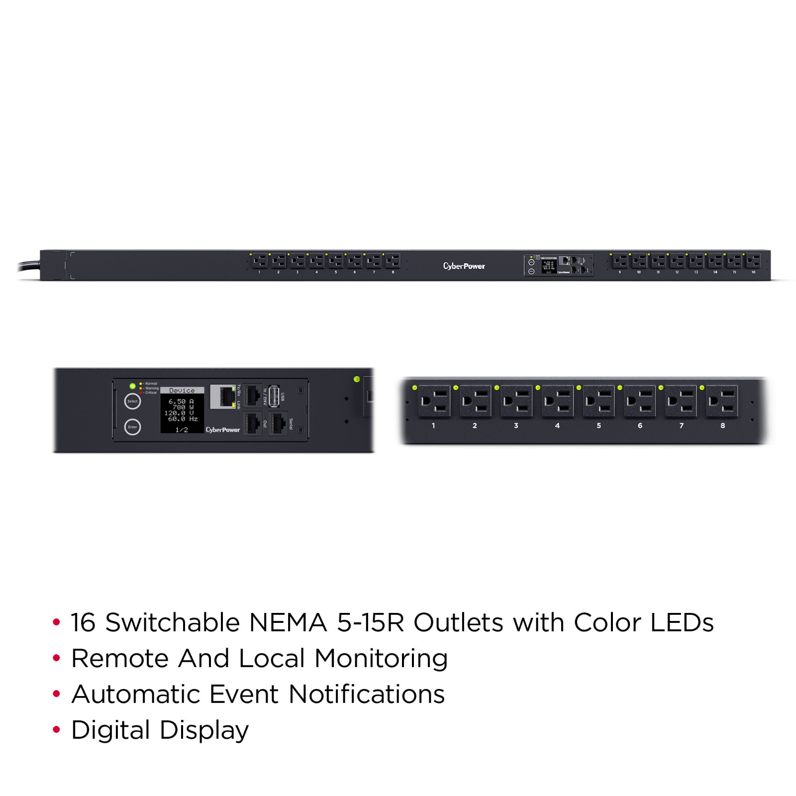 CYBERPOWER PDU41116 PDU 100-120V/15A 16 OUTLETS 0U RM