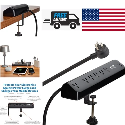 Eaton TLP610U30CLAMPB 6OUTLET SURGE PROTECTOR 2 USB-C 5-15R 30W PD DESK CLAMP 10FT CORD