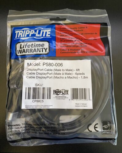 Eaton P580AB-006 6FT SAFEIT DISPLAYPORT CABLE ANTIBACTERIAL LATCHING CONNECTORS