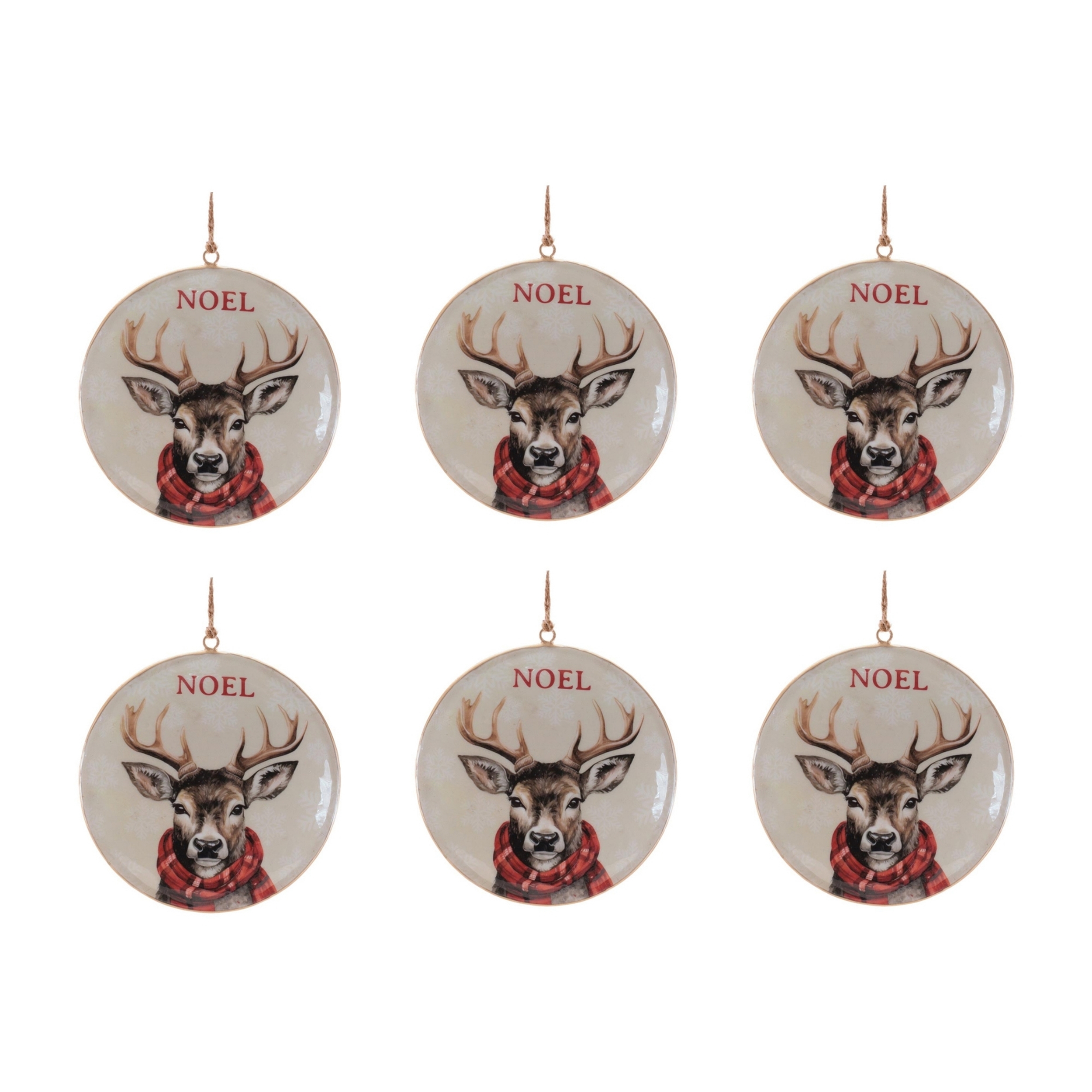 - Set of 6 disc-shaped iron ornaments featuring deer silhouettes