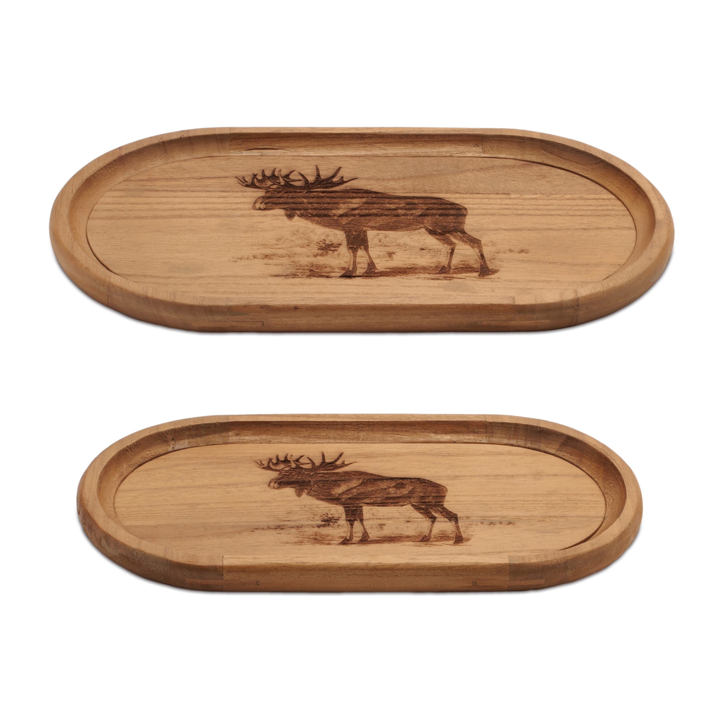 - Features an engraved moose design centered within each tray for a classic woodland and lodge-inspired accent