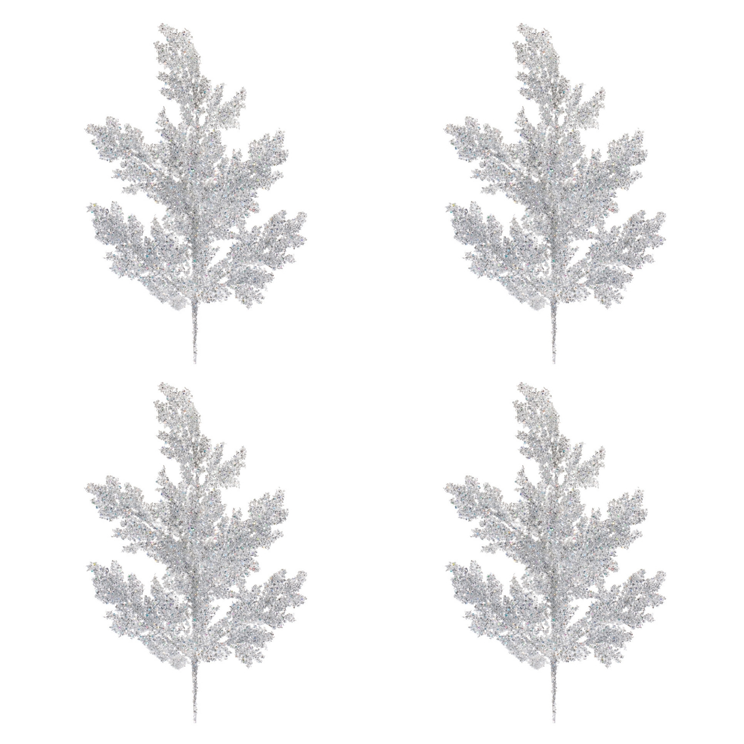 - Set of four glitter-coated leaf sprays with full, dimensional foliage design