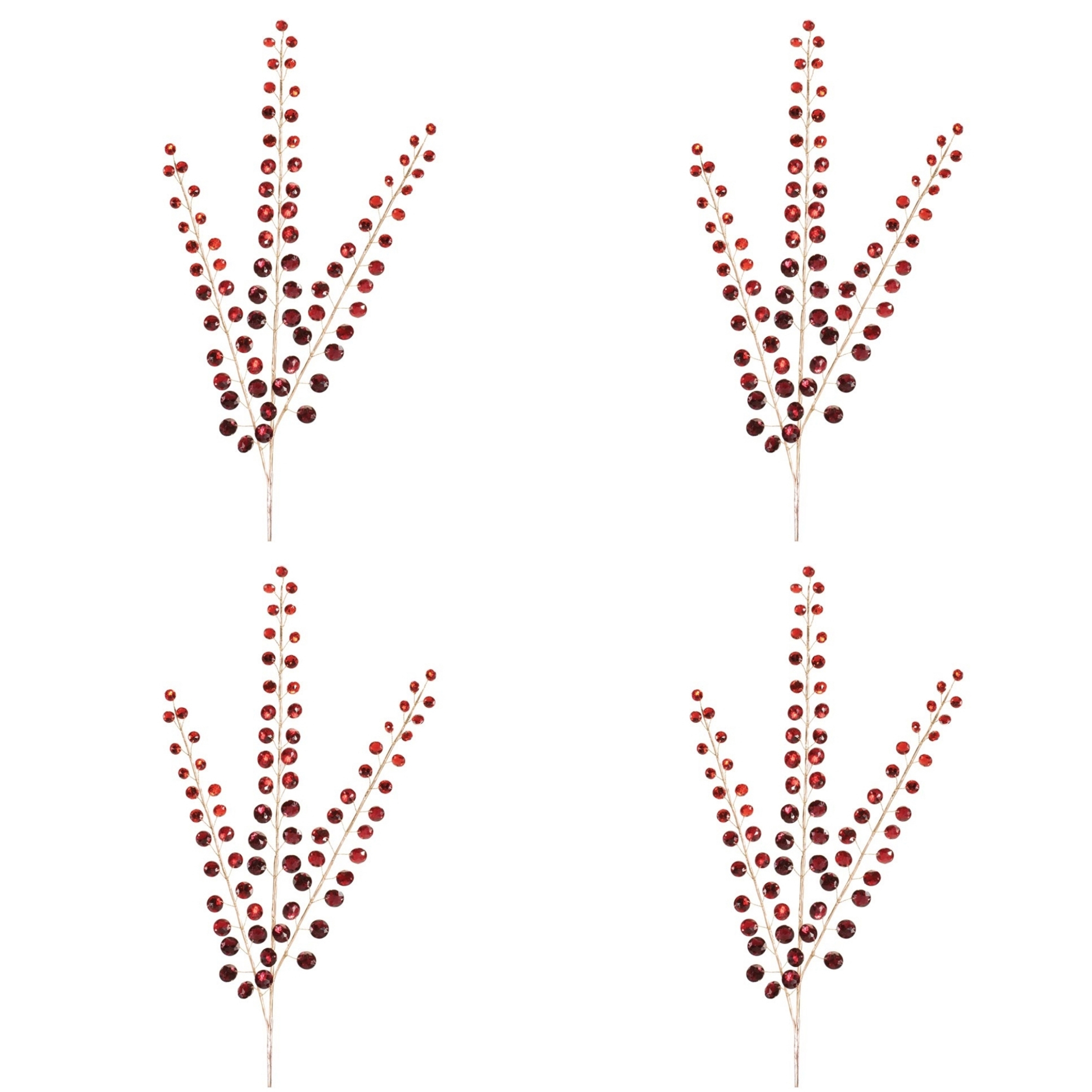 - Set of four decorative sprays featuring faceted jewel accents for eye-catching sparkle and texture