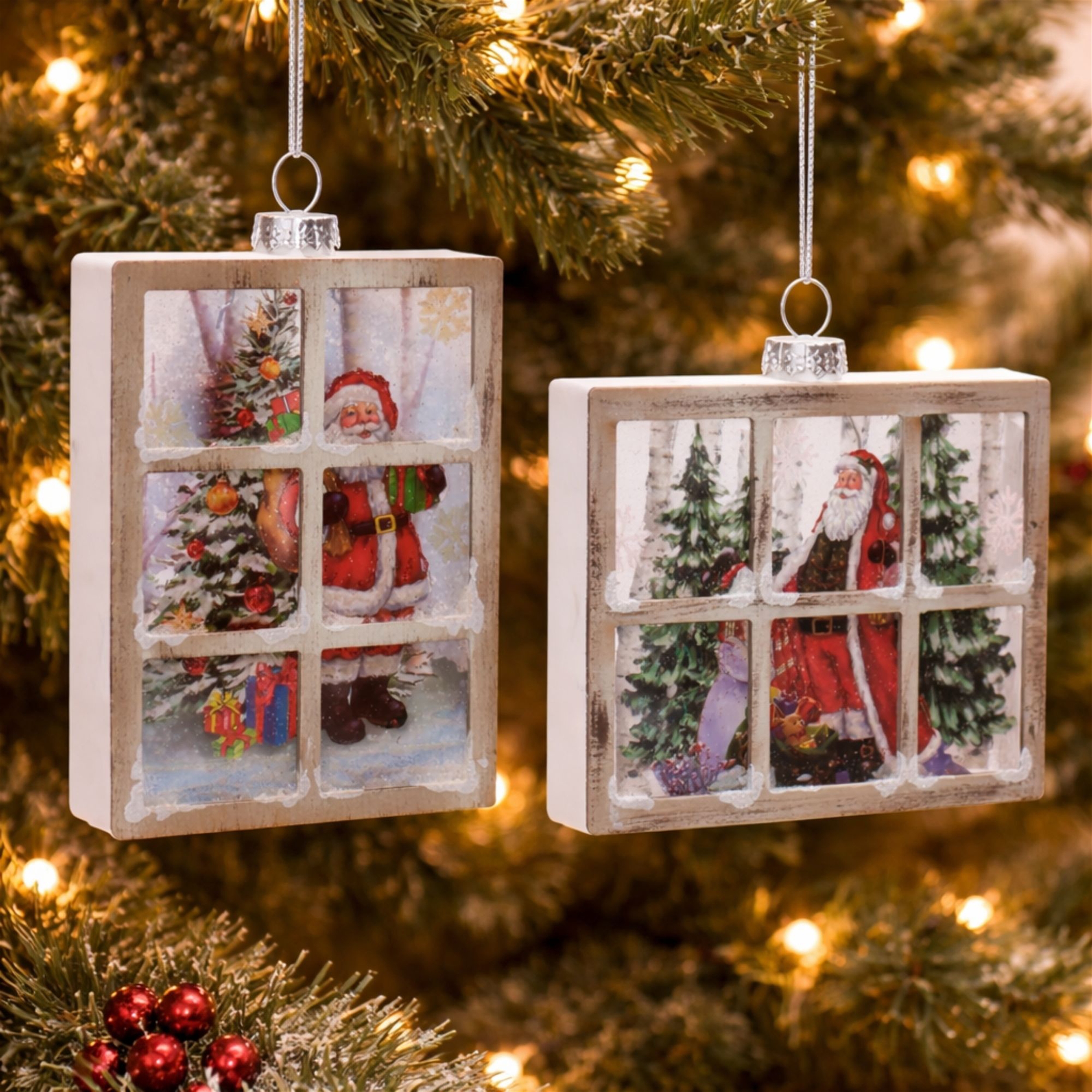 Bring holiday cheer to your windows and tree with this Glass Santa Window Ornament Set. Featuring charming Santa designs framed in a window-inspired shape, these glass ornaments add sparkle, dimension, and whimsical charm to your holiday d cor. Perfect for Christmas trees, window displays, garlands, or mantel arrangements, their bright, reflective surface catches the light beautifully. Ideal for traditional, playful, or family-friendly holiday themes, this set makes decorating festive spaces fun and magical.