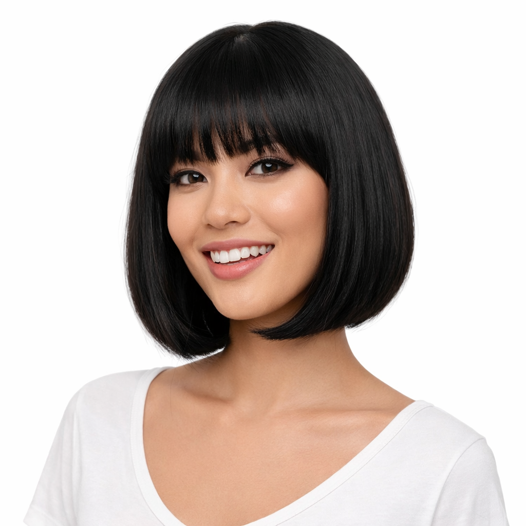 Experience a timeless look with our 10-inch blunt cut black bob. This wig is designed to provide a full, thick appearance with a silky straight texture that mimics natural hair perfectly. The center parting offers a clean, modern aesthetic suitable for professional settings, cosplay, or daily wear.