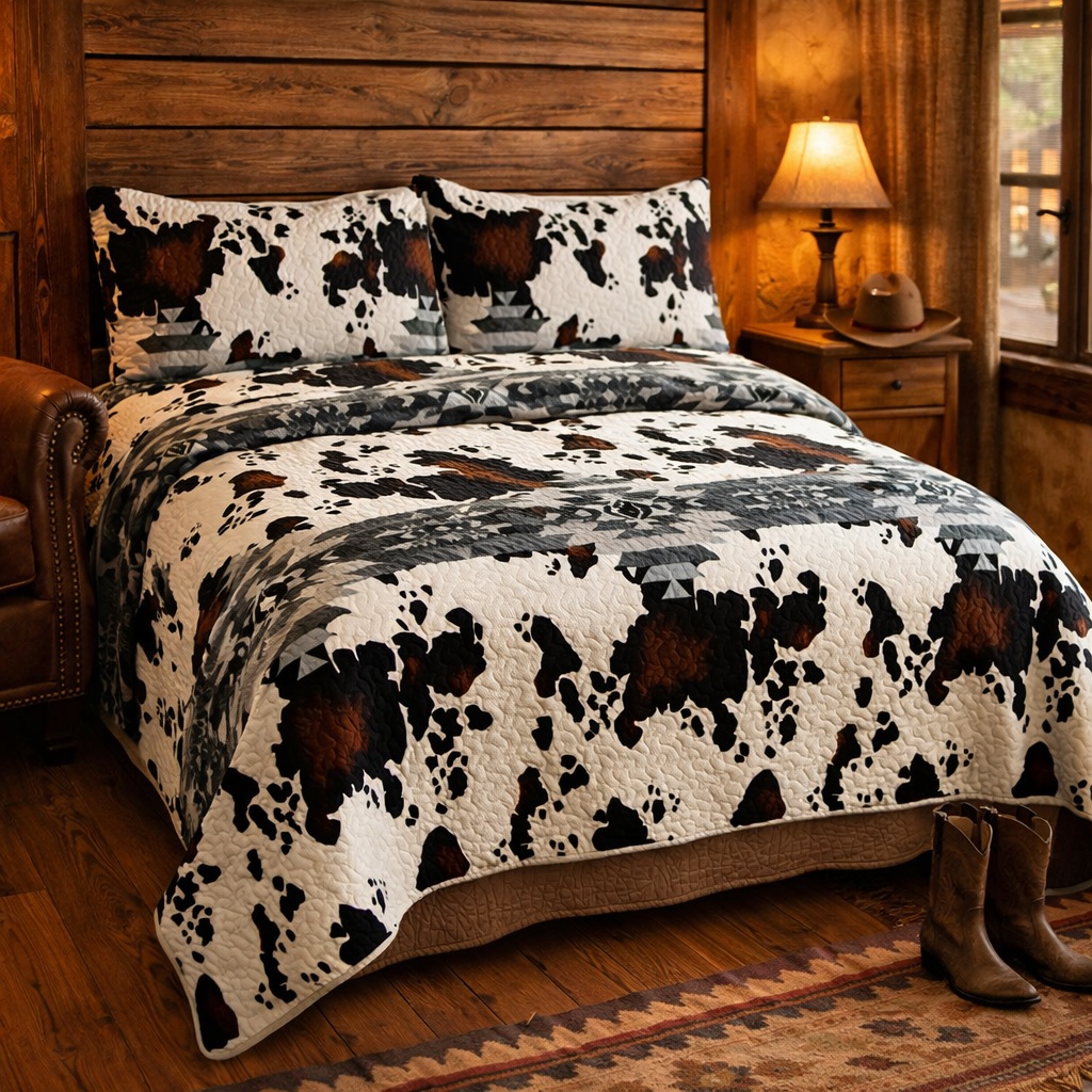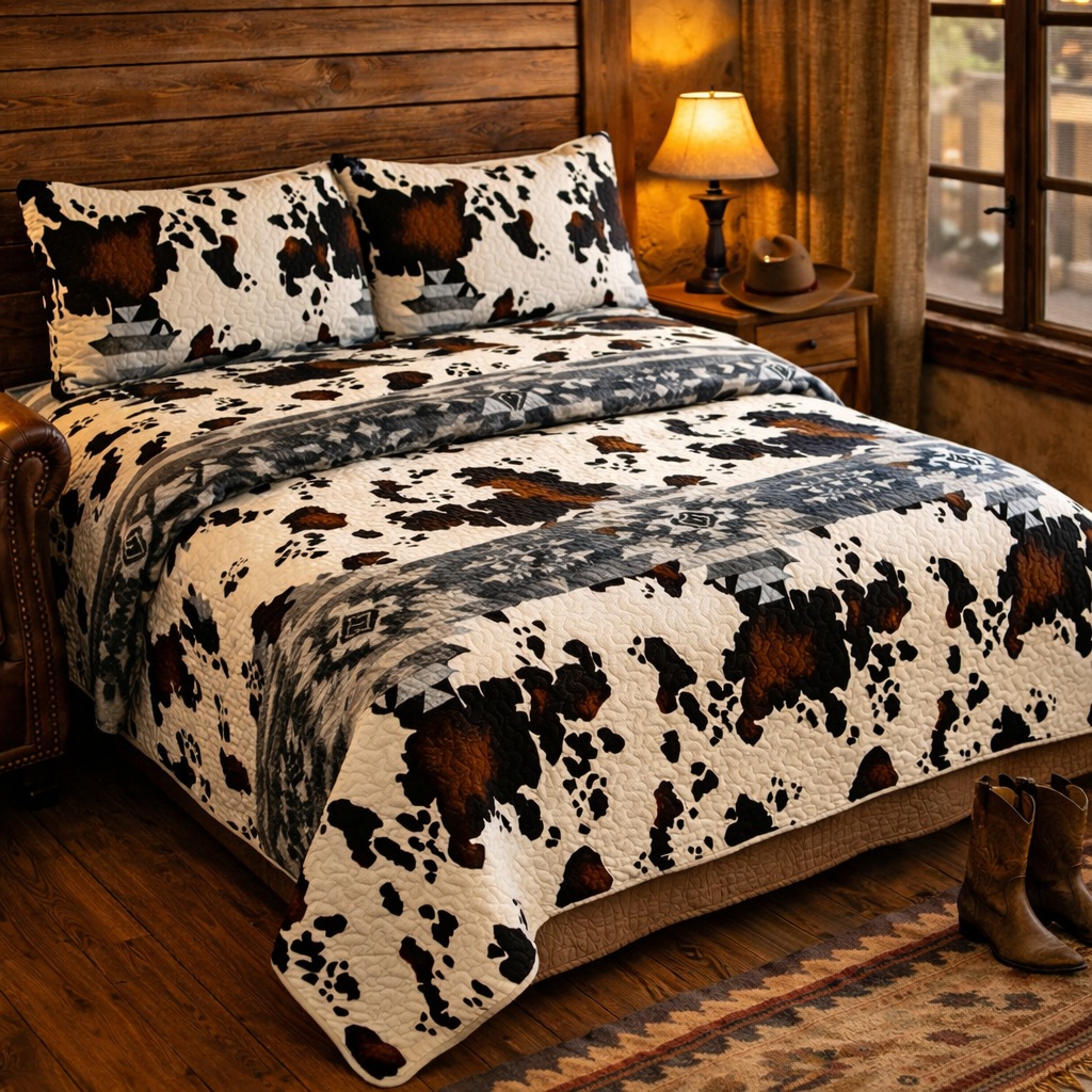 Cow & Aztec Print Western Bedding SetQueen & King Quilt Bedspreads Queen Size Oversized3 Piece Quilted Bedspreads - Oversized - Queen and King SizeCow & Aztec Print Bedding - Velvet Bedspreads |