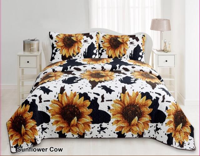 Cow Print & Sunflowers Western Bedding SetQueen & King Quilt Bedspreads Queen Size Oversized3 Piece Quilted Bedspreads - Oversized - Queen and King SizeCow Print and Sunflowers Bedding - Velvet Bedspreads |