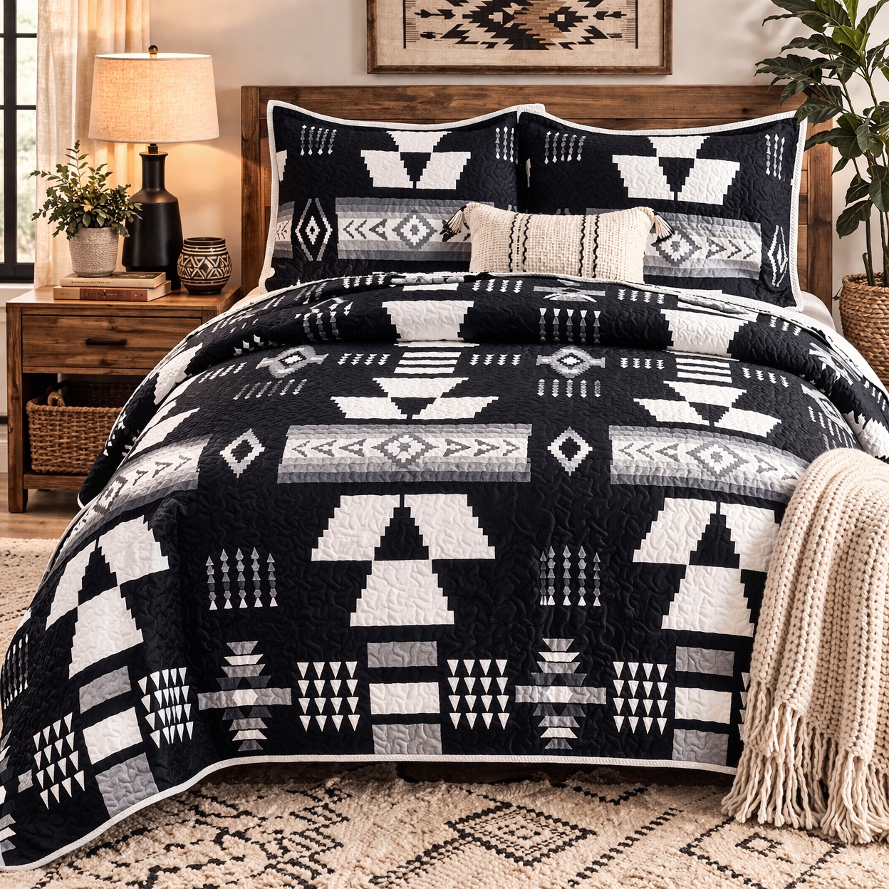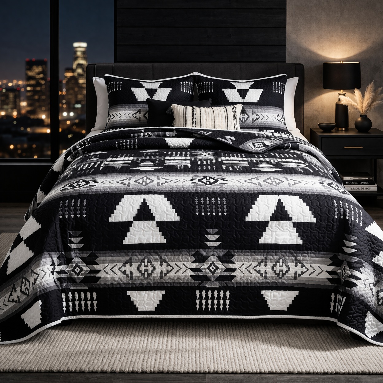 Geometric Print Bedding SetQueen & King Quilt Bedspreads Queen & King Oversized3 Piece Quilted Bedspreads - Oversized - Queen and King SizeBlack & White Geometric Print Bedding - Velvet Bedspreads |