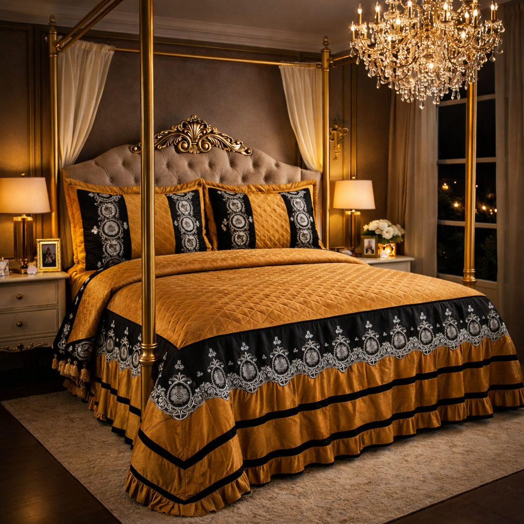 Istanbul Gold - Luxury Velvet Coverlet with Ruffle