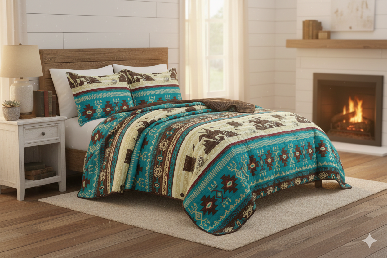 Southwestern Design 3 Piece Quilted Bedspread Set |