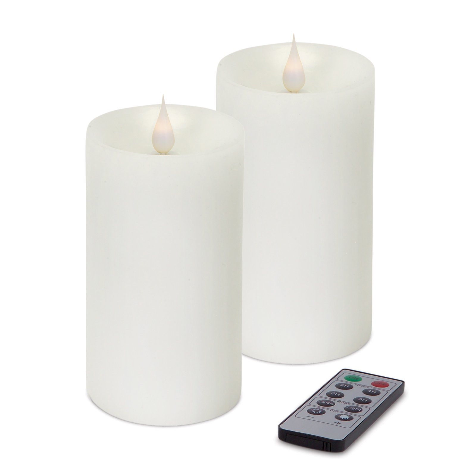 Bring a warm, realistic glow to your space with the Simplux LED Designer Pillar Candles. This elegant pair of white candles features Simplux's signature Moving Flame technology, mimicking the flicker of a real flame without the mess or safety concerns. Crafted from real wax for a natural look and feel, these flameless candles offer effortless ambiance with a convenient remote control and timer function perfect for cozy evenings, special occasions, or everyday decor. Sold in a set of two candles to create a balanced display in your candle holders and arrangements.