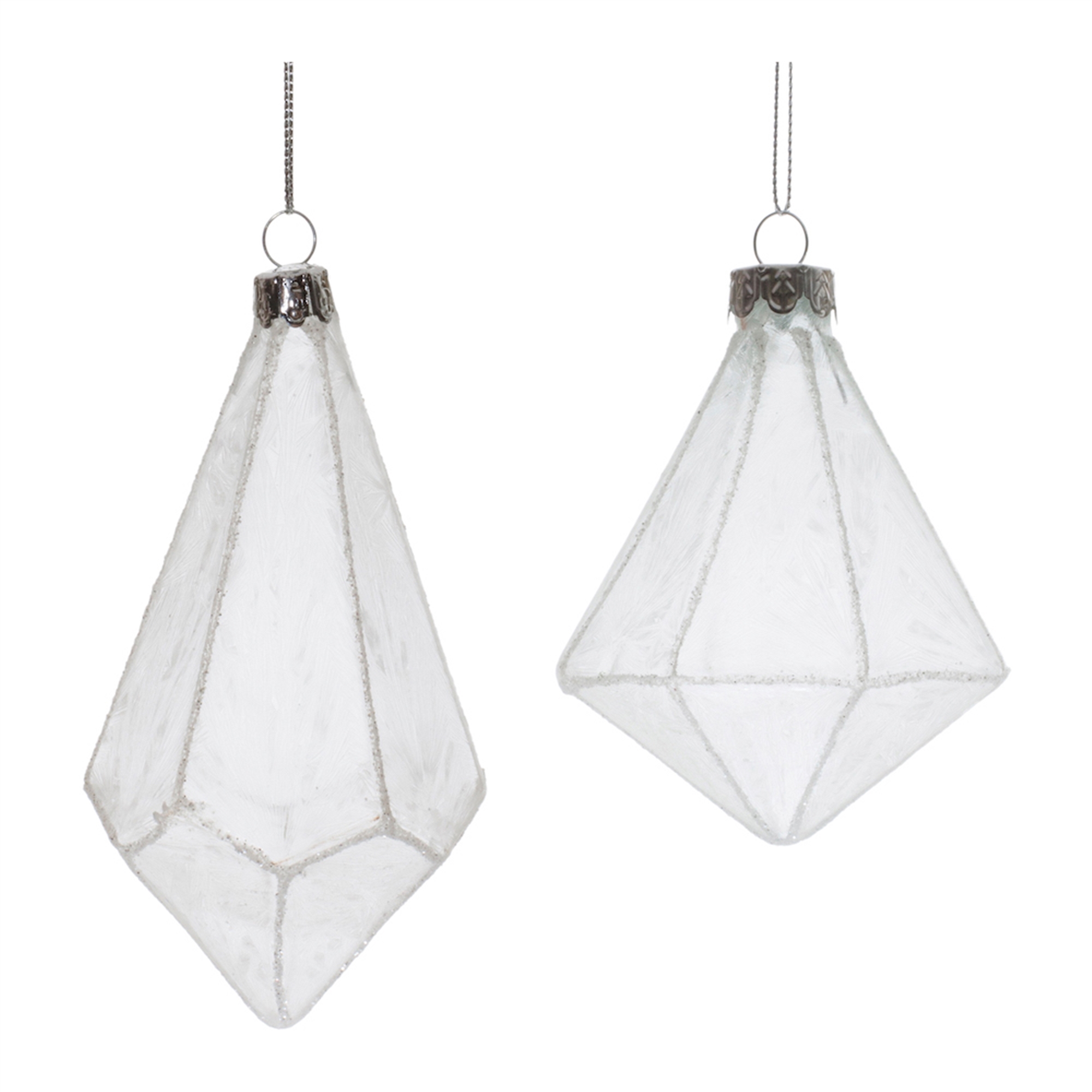 Transform your holiday decor with these beautiful Frosted Glass Drop Ornaments. This collection features charming designs, with a delicate frosted finish and elegant white and ivory tones. The ribbed texture adds a modern touch to your tree, while the high-quality glass construction and silver string hanger ensure long-lasting beauty. Perfect for adding holiday cheer to your home or as a thoughtful gift, these ornaments are designed to shine year after year. Celebrate the season with these timeless treasures! Sold in a set of six pieces with two assorted designs to create a balanced display on your Christmas tree.