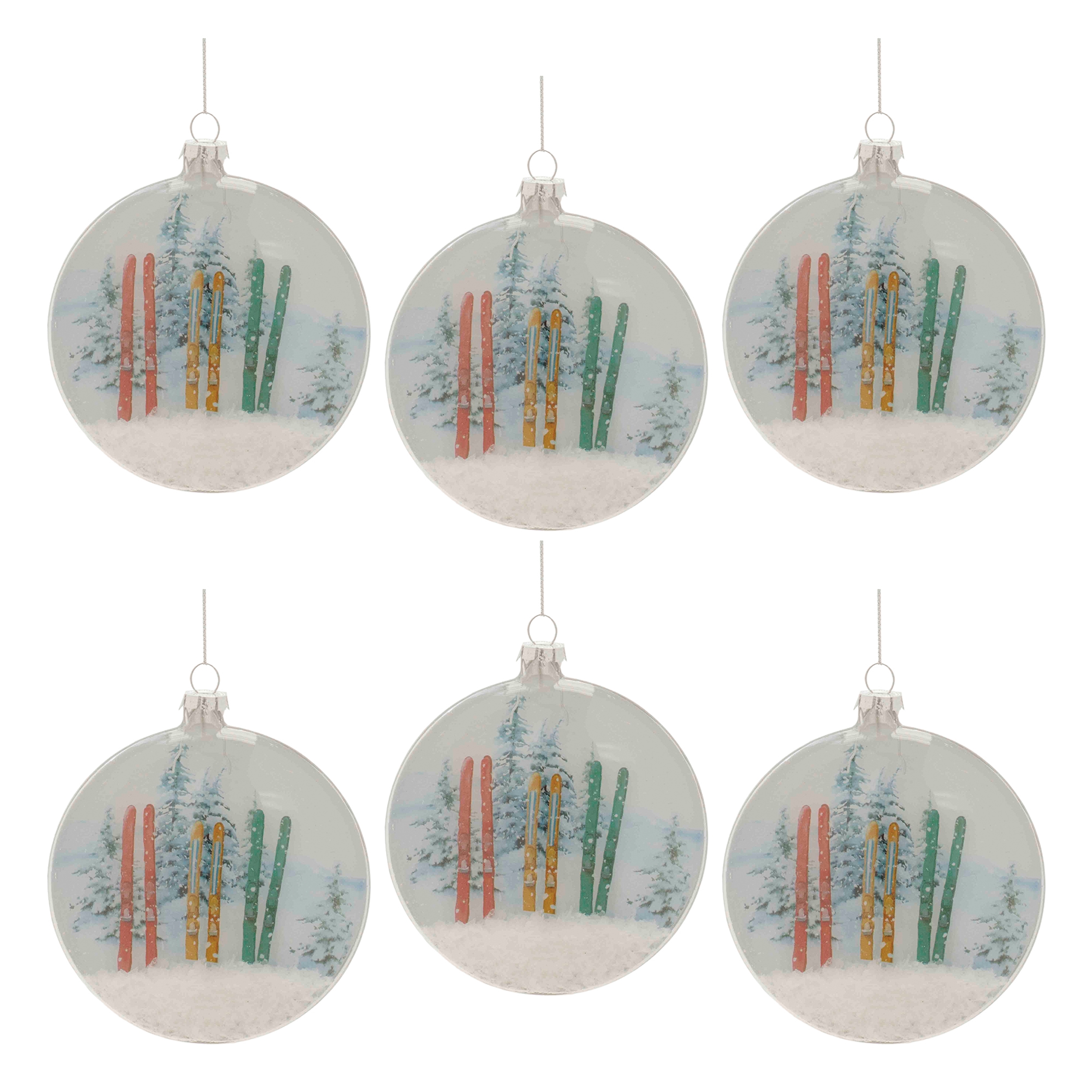 Glass Ski and Snow Disc Ornament (Set of 6)