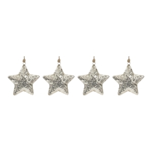 Elevate your holiday decor with the elegant Mosaic Metal Star Ornament Set. These beautiful ornaments, crafted from durable iron and adorned with shimmering silver mosaic glass, add a chic and timeless touch to your Christmas tree. The rustic jute string hanger ensures a perfect finish, making them a stunning addition to your festive display. This collection of star-shaped ornaments is designed to endure for many seasons and makes a delightful gift for friends and family alike. Bring joy to your home with this elegant and durable ornament set! Sold in a set of four matching pieces to create a balanced display on your Christmas tree.