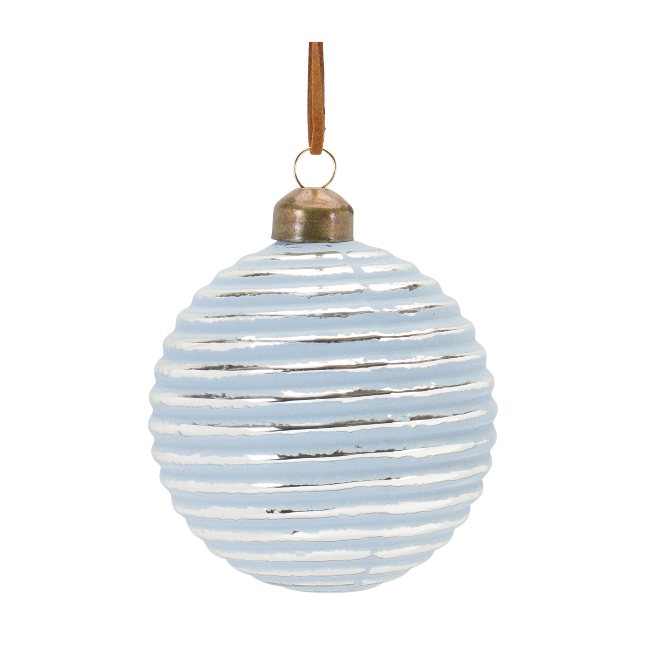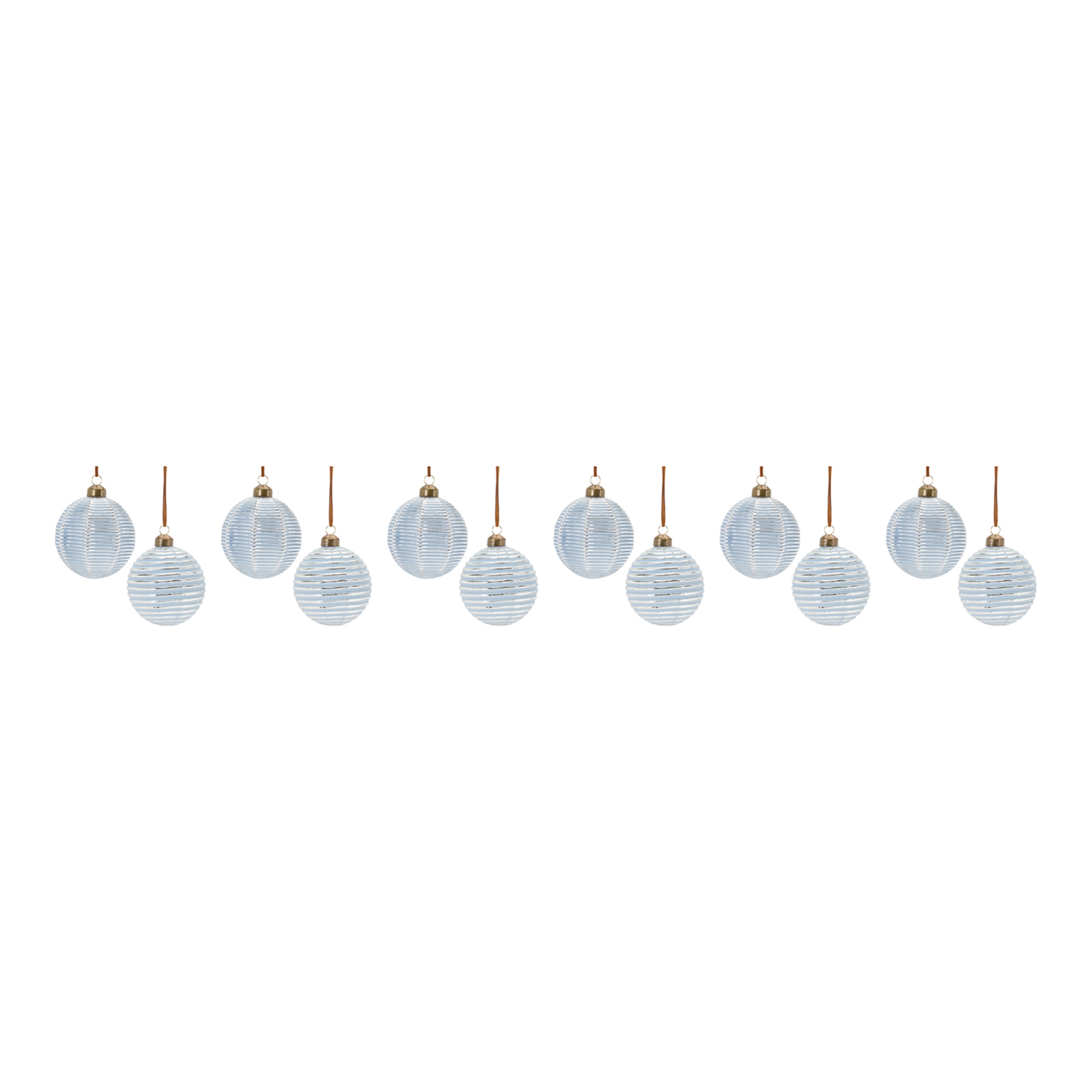Elevate your holiday decor with the Ribbed Glass Ornament Set. These stunning glass ornaments, in a blend of wintry blue and white tones, bring a touch of elegance to your Christmas tree. With a charming ribbed texture and delicate hanging cord, these ornaments offer a timeless look that will last for seasons to come. Perfect for adding a festive touch to your home or for gifting to a loved one, these ornaments will surely brighten any holiday display. Sold in a set of twelve pieces with two assorted designs to create a balanced display on your Christmas Tree.
