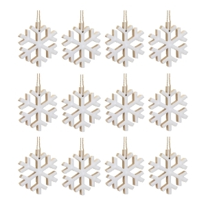 Add a magical touch to your holiday decor with our Snowflake Ornament Set! Crafted from durable MDF wood and featuring a charming white finish, these ornaments bring the beauty of a winter wonderland into your home. Whether you're decorating your Christmas tree or giving a thoughtful gift, this set of twelve snowflakes with jute hangers will shine brightly and add a cozy, festive vibe to any space. Perfect for indoor use, they're the ideal addition to your seasonal celebrations. Sold in a set of twelve matching pieces to create a balanced display on your Christmas Tree.