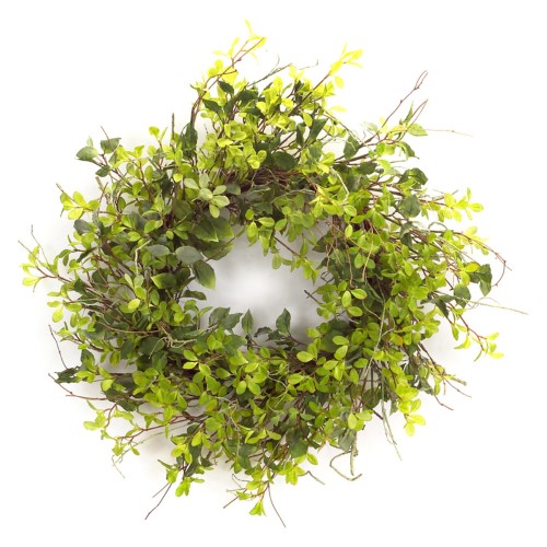 Enhance your home with the natural beauty of this 30" Oversized Mixed Foliage Wreath. Designed to bring a fresh, inviting look to any space, this lush wreath features an artful blend of realistic green foliage on a sturdy twig base. Whether displayed on your front door, entryway, or living space, its vibrant greenery makes a timeless seasonal statement. Crafted from durable polyester, this wreath is designed to maintain its charm for seasons to come. Perfect for indoor use or covered outdoor spaces, it's a must-have accent for effortless home styling. Measures 30 inches across when branches are extended and fluffed.
