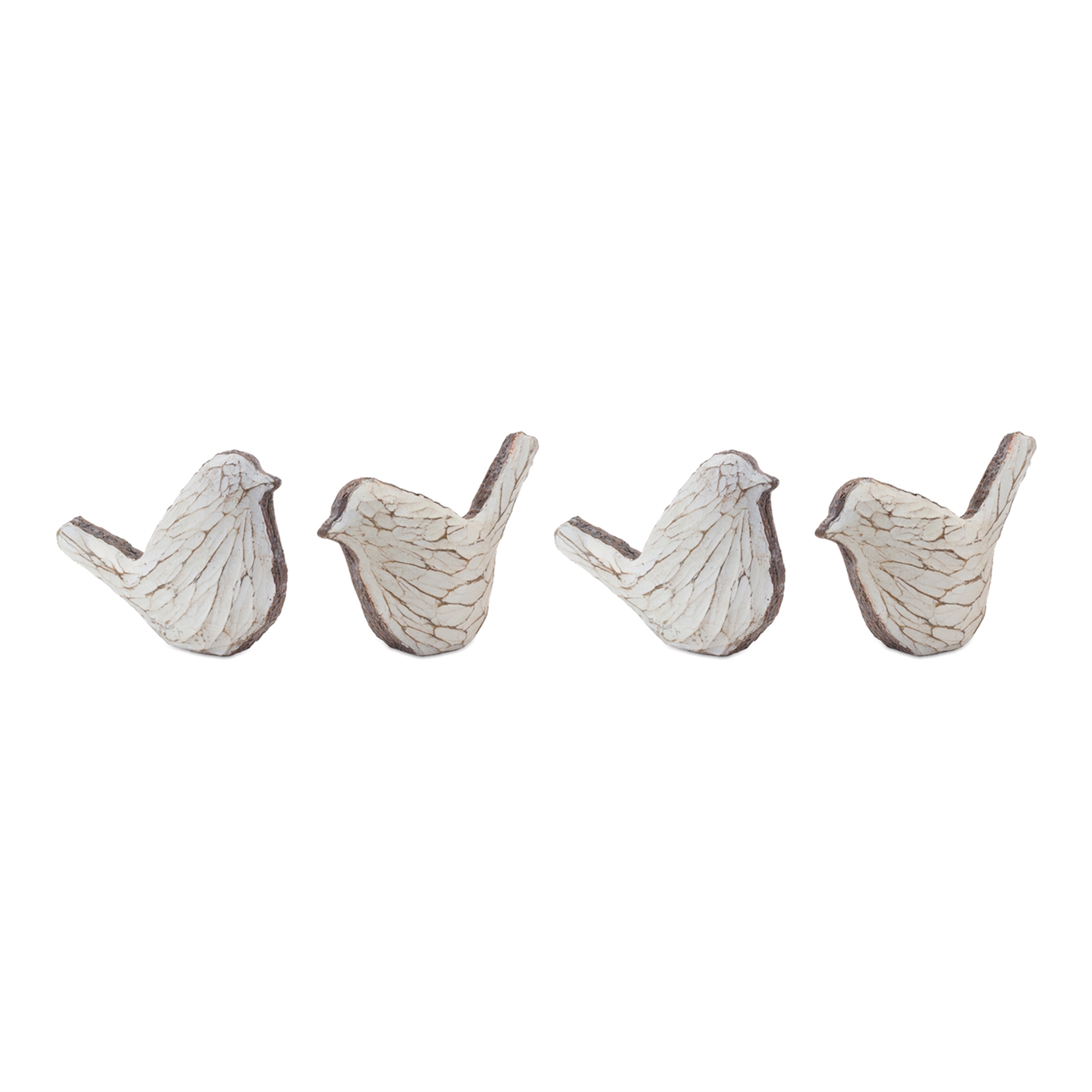 Bring the charm of nature indoors with this set of Carved Bird Figurines. Expertly crafted from high-quality resin, each bird features a serene blend of cream and brown tones with a soft white-washed finish. Their graceful design adds a sophisticated, organic feel to shelves, mantels, desktops, and more. Ideal for nature lovers and modern decorators alike, these figurines effortlessly elevate any room with subtle elegance. Sold in a set of four pieces with two assorted designs to create a meaningful display in your home.