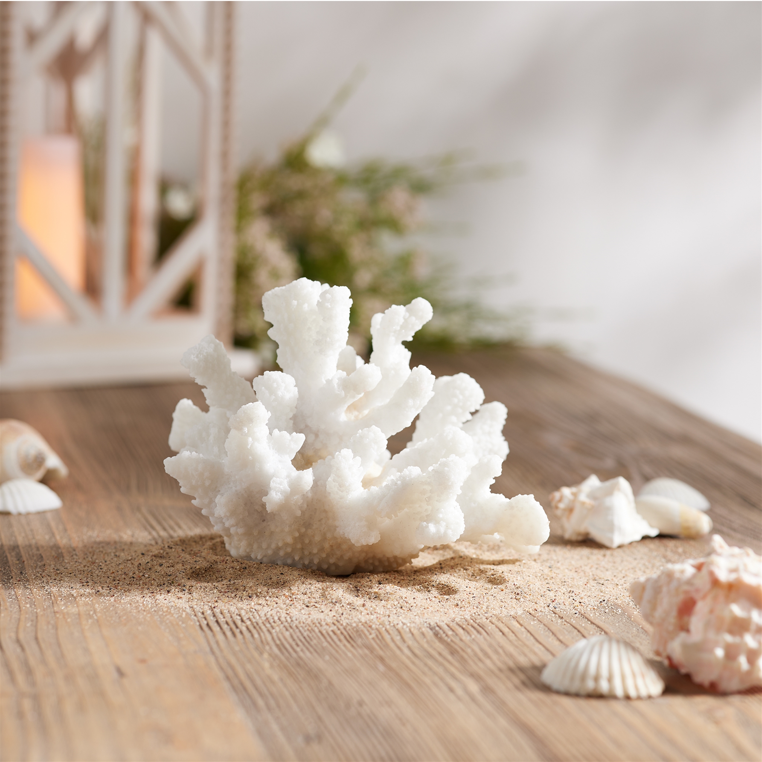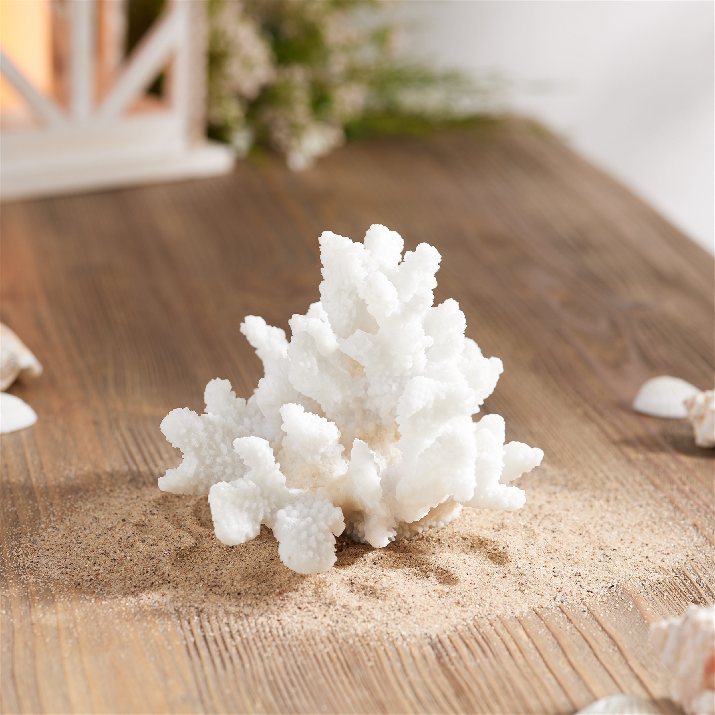Bring the calming beauty of the ocean into your home with this Set of 4 White Resin Coral Sculptures. Each piece features intricate detailing that mimics natural coral, crafted from durable resin for lasting elegance. Perfect for coastal, beach house, or nautical-themed d cor, these 4.5-inch tall sculptures add texture and sophistication to shelves, mantels, or tabletops. Display them together as a charming centerpiece or scatter throughout your space to evoke a serene seaside vibe year-round.