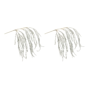 Elevate your holiday decorations with this set of Hanging Tinsel Branches. Measuring 28 inches tall, these stunning silver tinsel branches are a perfect blend of festive charm and nature-inspired beauty. Ideal for creating unique holiday displays, these branches can be placed in tabletop vases, porch pots, or anywhere you want to add height and sparkle to your space. Whether you're decorating for Christmas or looking for a special gift, these versatile and eye-catching branches will bring joy to any home. Crafted from durable plastic, they're perfect for both indoor and outdoor-covered use. Sold in a set of two matching pieces to create a balanced display in your home.
