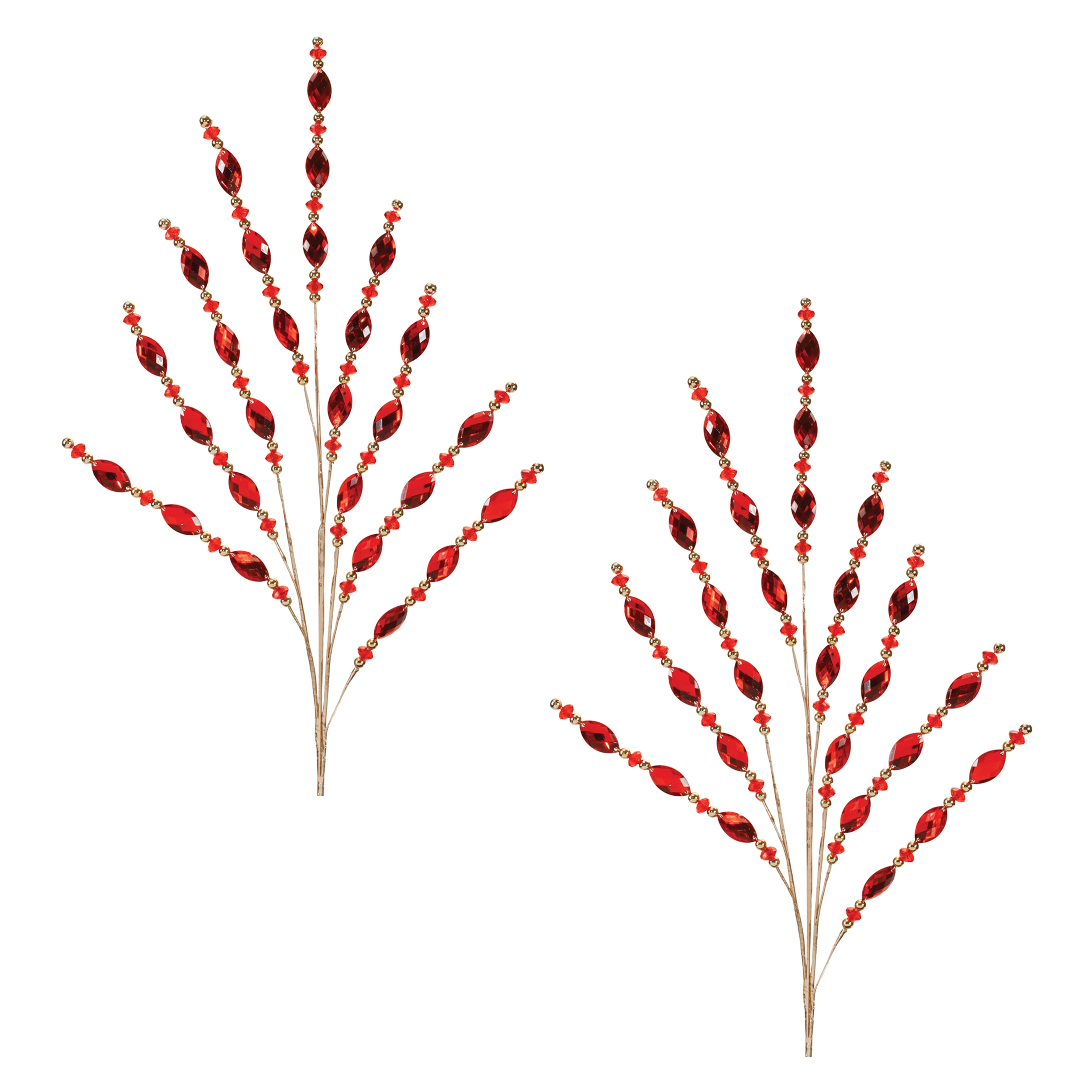 Bring a touch of elegance to your holiday decor with the Red Jewel Bead Spray. These stunning sprays combine deep red tones with a chic jewel design, creating the perfect accent for your festive display. Crafted from durable plastic and iron wire, they're built to last through seasons of holiday cheer. Whether used in a tabletop vase, garland, or wreath, these versatile sprays add height and charm to any arrangement. Perfect for your own home or as a thoughtful gift, these sprays will bring joy and beauty to any holiday setting. Sold in a set of two matching pieces to create a balanced display in your home.