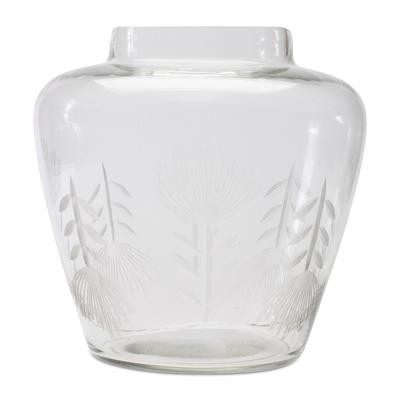 Add a touch of elegance to your space with this stunning Etched Soda Lime Glass Urn Vase. With a 6.5" diameter, this vase features a delicate etched leaf design that complements both cottage chic and modern farmhouse interiors. Crafted from durable soda lime glass, its timeless appeal will bring beauty to your home for years to come. Perfect for showcasing dried florals, fresh garden stems, or as a thoughtful gift for a loved one, this vase creates a lasting impression in any room.