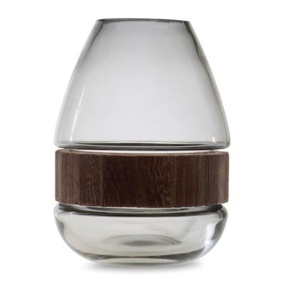 Bring a touch of modern rustic charm to your space with this 7.5" Grey Glass Vase featuring a natural wood base. Crafted from high-quality glass and solid wood, this decorative vase combines a cool grey tone with a warm wooden accent for a balanced, elegant look. Ideal for displaying dried botanicals or fresh blooms, it's a versatile piece that elevates tabletops, shelves, and mantels with subtle sophistication.