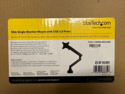 Startech ARMPIVOT DESK MOUNT MONITOR ARM SINGLE DISPLAY ERGONOMIC VESA MOUNT STAND
