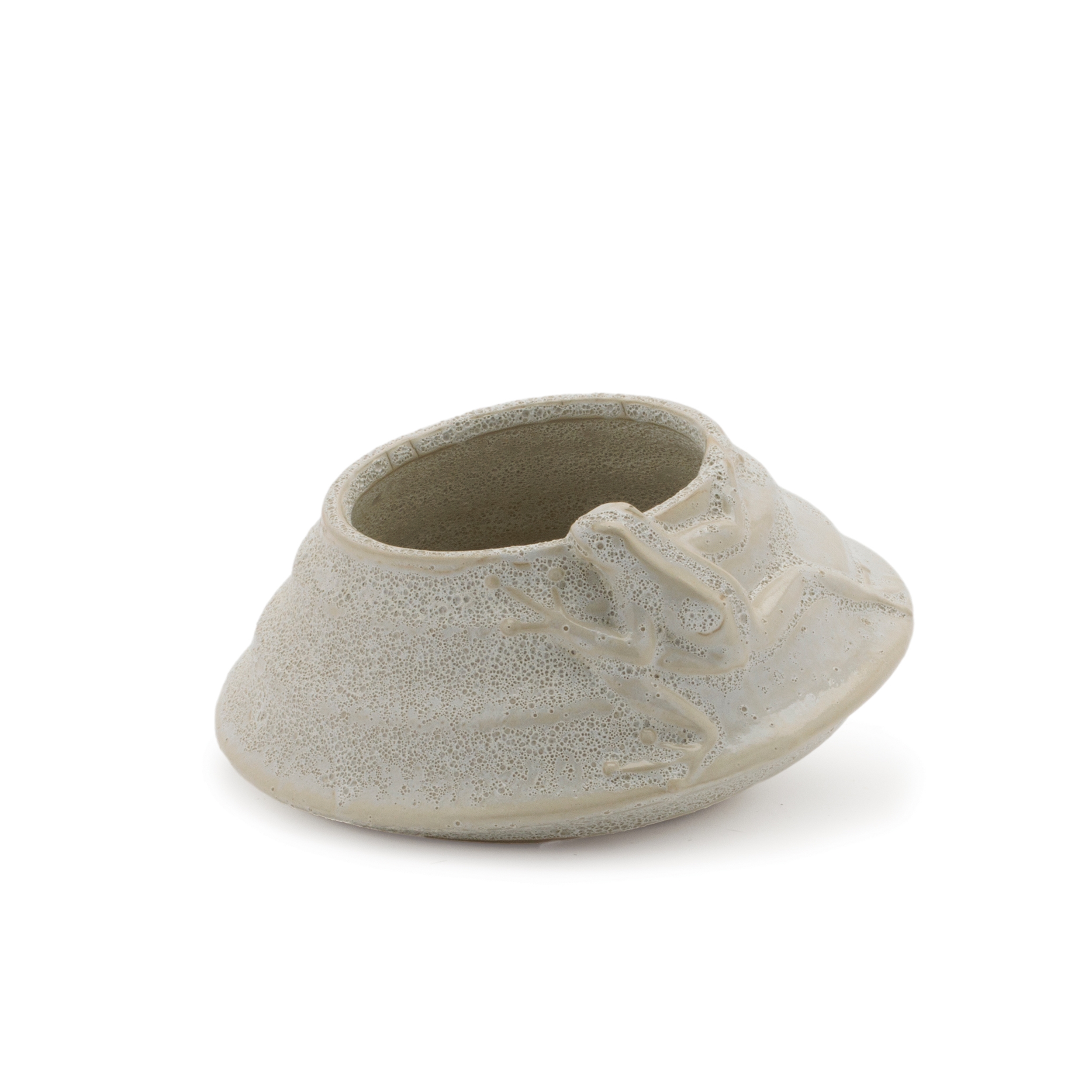 Bring a playful touch to your space with the Round Porcelain Planter with Frog Set. Featuring cool beige and white tones with a glazed finish, these planters stand out with their unique round shape and tapered bottom. The charming frog accent adds a whimsical element to the design, making it a fun addition to your home. Sold in a set of two assorted sizes, these planters are perfect for showcasing real or faux plants and can be used both indoor and outdoor covered.