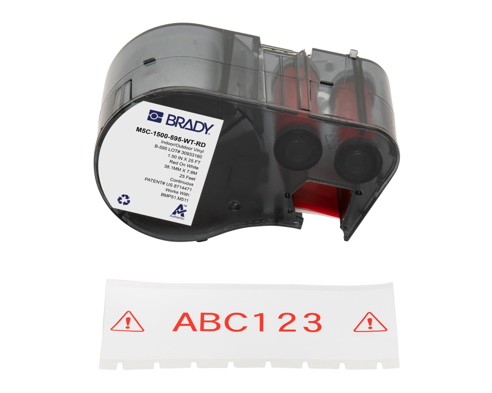 Brady M5C-1500-595-WT-RD VINYL LABELS FOR M5 PRINTERS - 1.5, RED ON WHITE