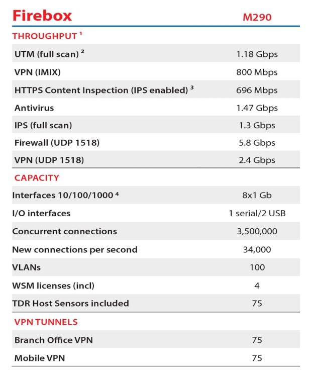 WatchGuard WGM29001601 M290 HIGH AVAIL W/ 1Y STD SUPP