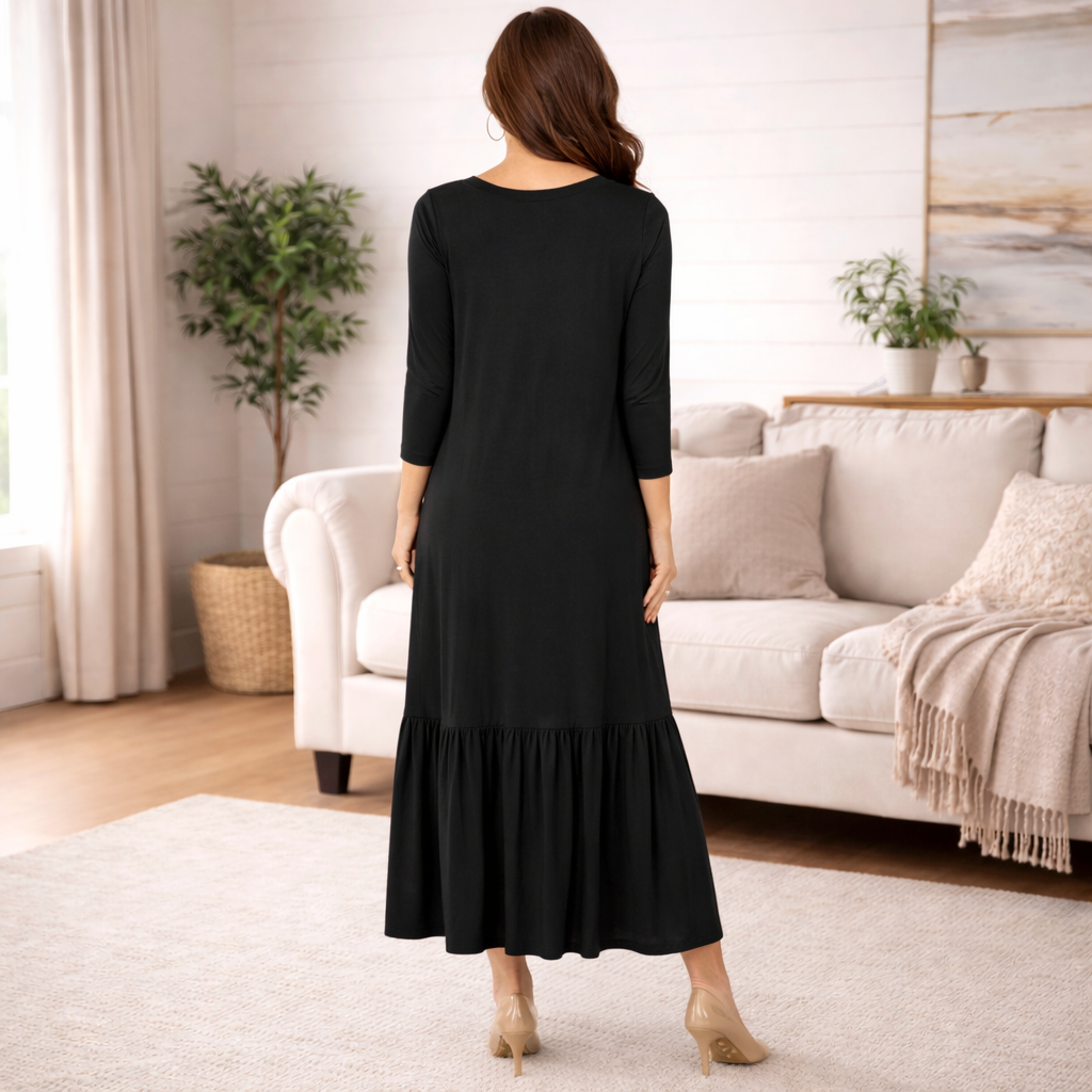 Women's 3/4 sleeve long Black maxi dress with pockets Relaxed Fit - Oversized Black Maxi dress with pockets
