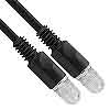 Toslink round type plugs with light view on both ends of a 4mm plastic fiber cable.
