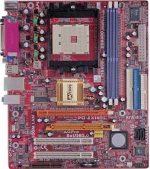 PC CHIPS A31G MotherboardSocket 754 for AMD Athlon 64, Sempron, SiS 761GX chipset, SATA, 2 DDR, PCI Express 16x, AGPro, 2 PCI, 1 CNR On-board Audio, Video, LAN, USB. Micro ATX. |
