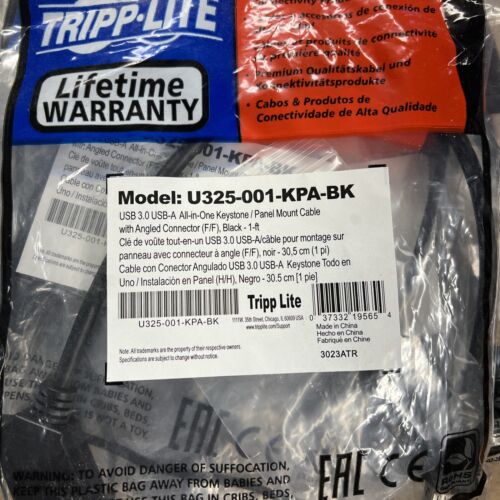 Eaton U324-001-KPA-BK EATON TRIPP LITE SERIES USB 3.0 ALL-IN-ONE KEYSTONE/PANEL MOUNT EXTENSION CABLE