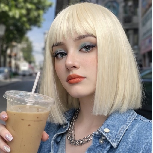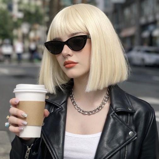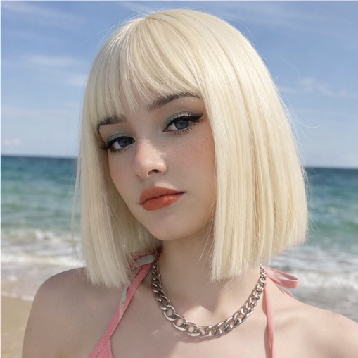 Upgrade your look instantly with this stylish short bob wig featuring soft bangs and a sleek, straight finish. Designed for comfort and a natural appearance, this wig is perfect for daily wear, parties, cosplay, or special occasions.