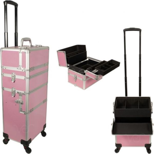 Pink Aluminum Rolling Cosmetics Case