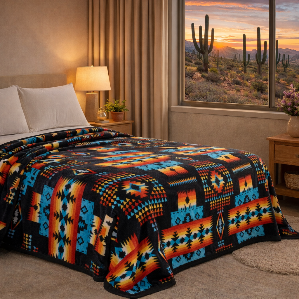 Serafina Geometic Print / Aztec Print BlanketUltra Soft and Cozy. Sleep in it or wrap it around yourself. Either way you won't let go of the blanket. It will keep you warm but you'll fall in love with it's softness. Bright & Colorful: The Geometric / Aztec print is colorful and it's a popular print. Adds color to your room. 100% microfiber, soft, durable, lightweight, fade-resistant, wrinkle-resistant, and machine washable. Design: Geometric Aztec print Color: Multicolor Size: King size Dimensions: 85" x 90" |
