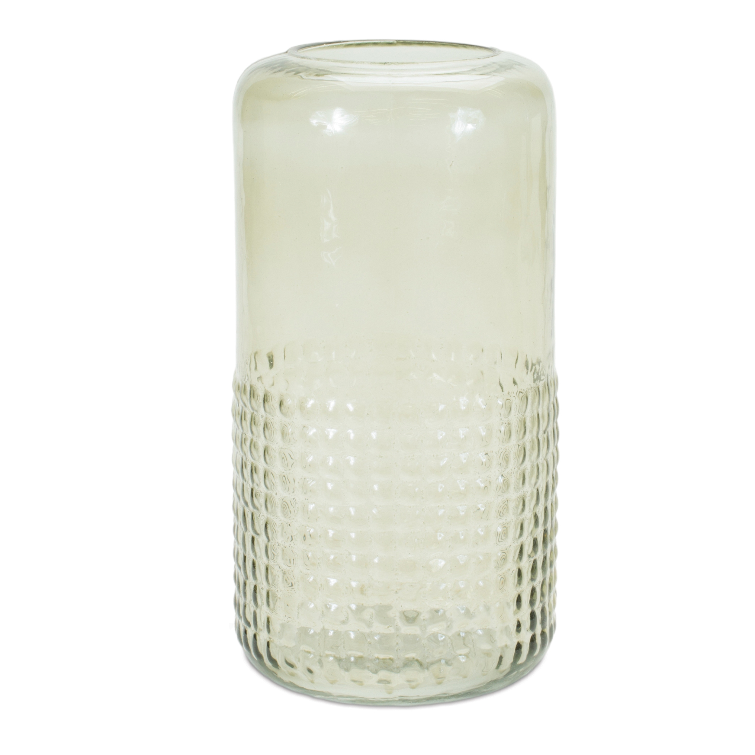 Add a touch of modern elegance to your home with the Green Textured Glass Candle Holder Vase. Featuring a clear sage green finish and a contemporary curved design, this versatile piece serves as both a striking candle holder and a stylish vase. The modern hobnail textured accents create a unique look that complements any decor. Perfect for holding 3-4" pillar candles or filled with fresh garden stems, this piece adds sophistication and charm to any room.