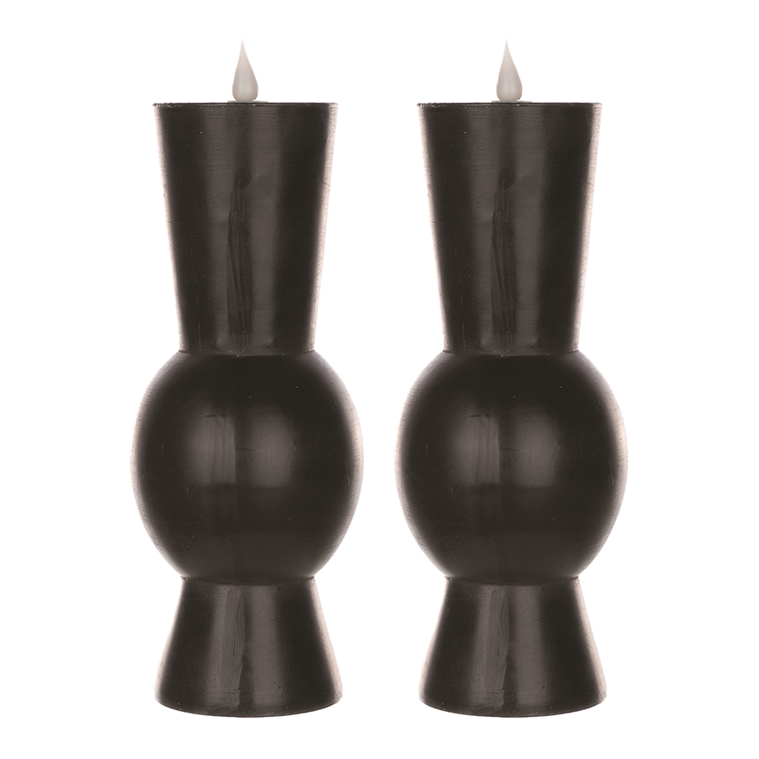 Add a touch of sophistication and ambiance to your space with the Simplux Designer LED Candle Set. Featuring a sleek black finish, abstract tapered shape, and a realistic moving flame effect, these candles are perfect for modern or contemporary interiors. The set includes two candles, designed with a combination of wax and plastic for an authentic appearance. With convenient 4 and 8-hour timers, you can effortlessly collection the mood without worrying about turning them off. Ideal for lanterns or candle holders, these candles bring a serene, flickering light to any room. Sold in a set of two candles to create a balanced display in your candle holders and arrangements.