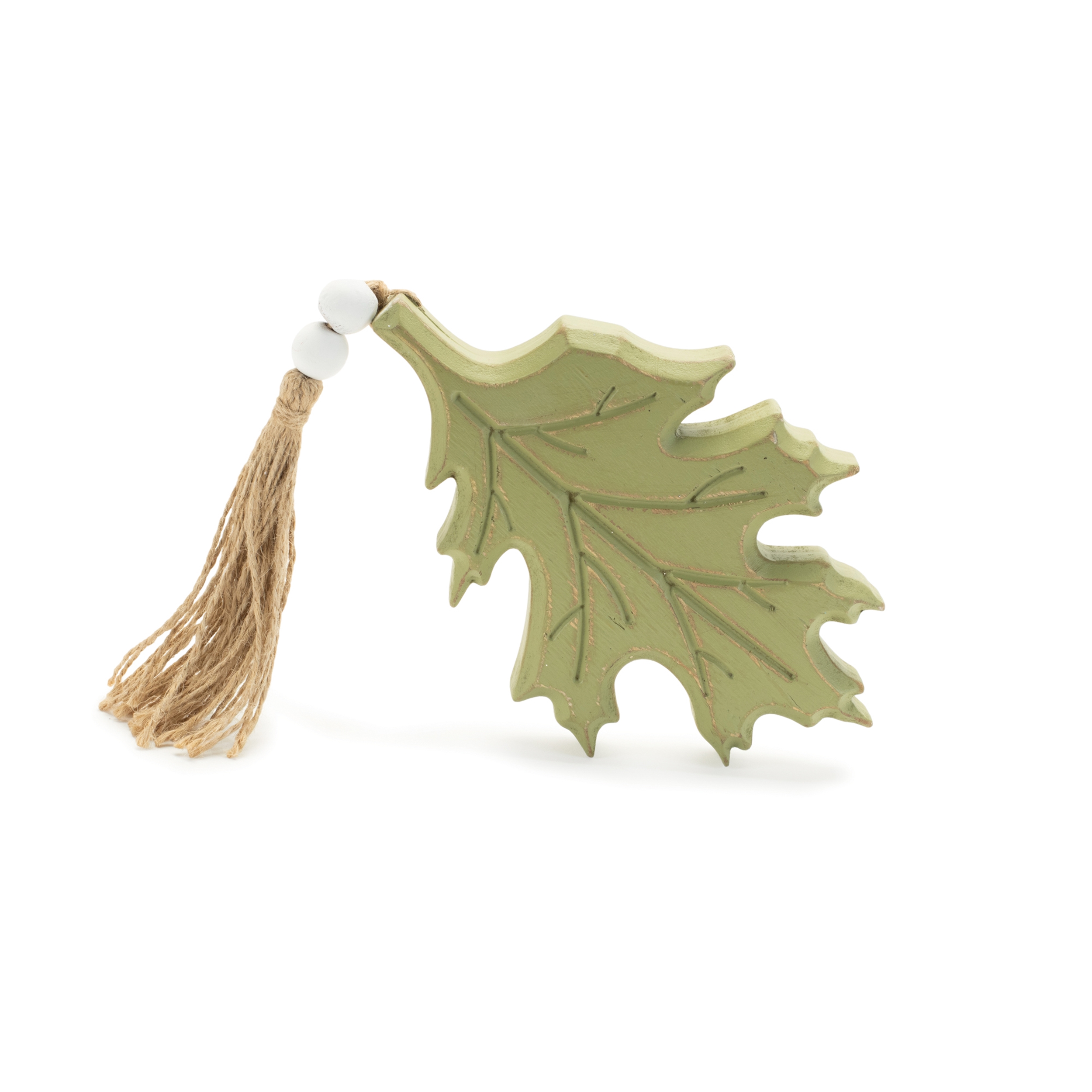 Celebrate the beauty of the season with this charming set of two Fall Leaf Hanging D cor pieces. Featuring a mix of earthy orange, green, and brown hues, each leaf is crafted from sturdy MDF and finished with a jute tassel for a rustic, handcrafted look. Perfect for Fall and Thanksgiving displays, these hanging leaves bring cozy, seasonal charm to wreaths, garlands, doorknobs, or tiered trays.