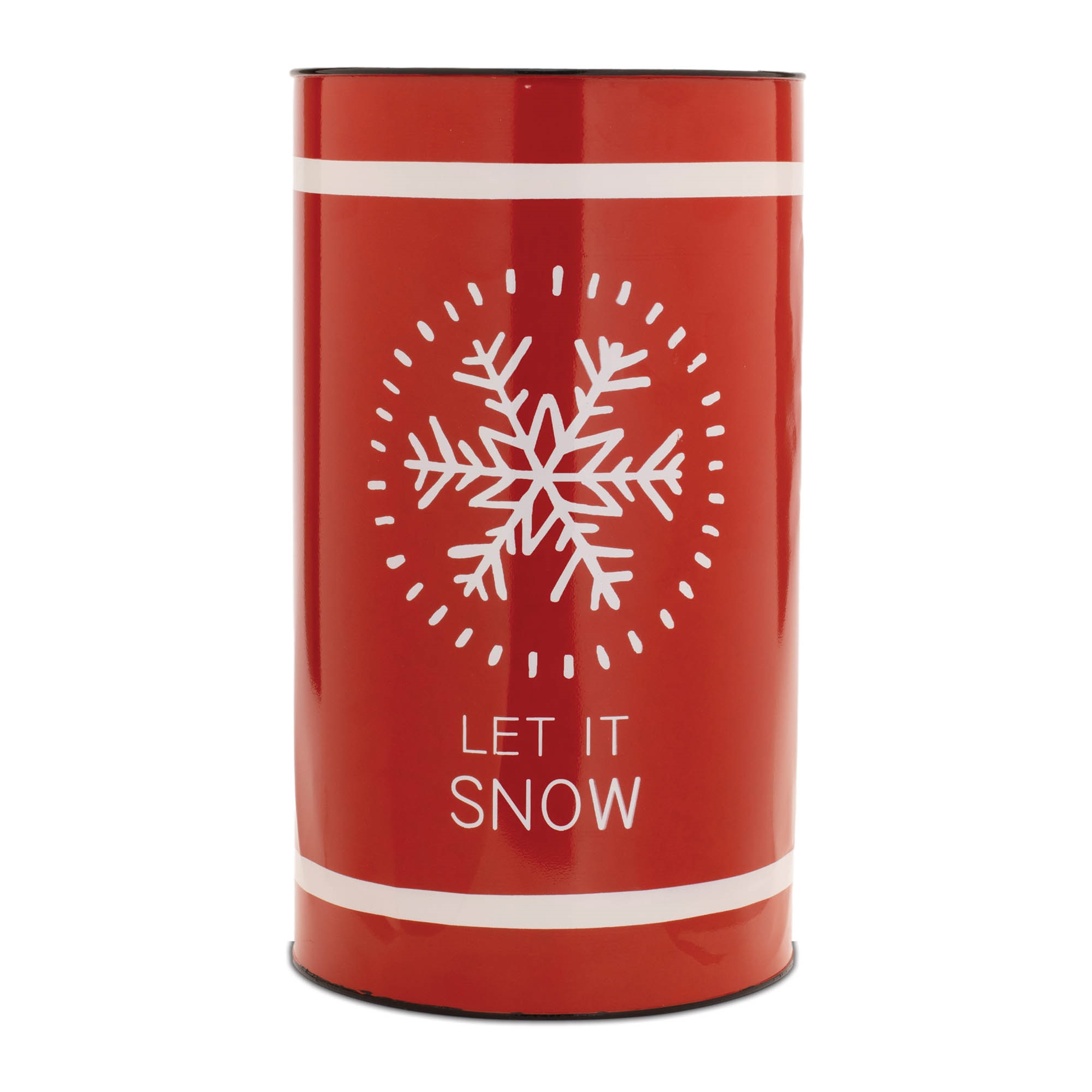 Add a festive touch to your holiday decor with this Metal Holiday Floor Vase Set. Designed in classic red and white tones, these tall iron vases feature charming snowflake and reindeer motifs, along with seasonal sentiments that read "Let it Snow" and "Believe". The versatile, oversized design makes them ideal for showcasing winter pine stems, holiday floral arrangements, or poinsettias. Perfect for placement by your entryway, fireplace, or Christmas tree, these decorative containers bring seasonal charm and warmth to your home.