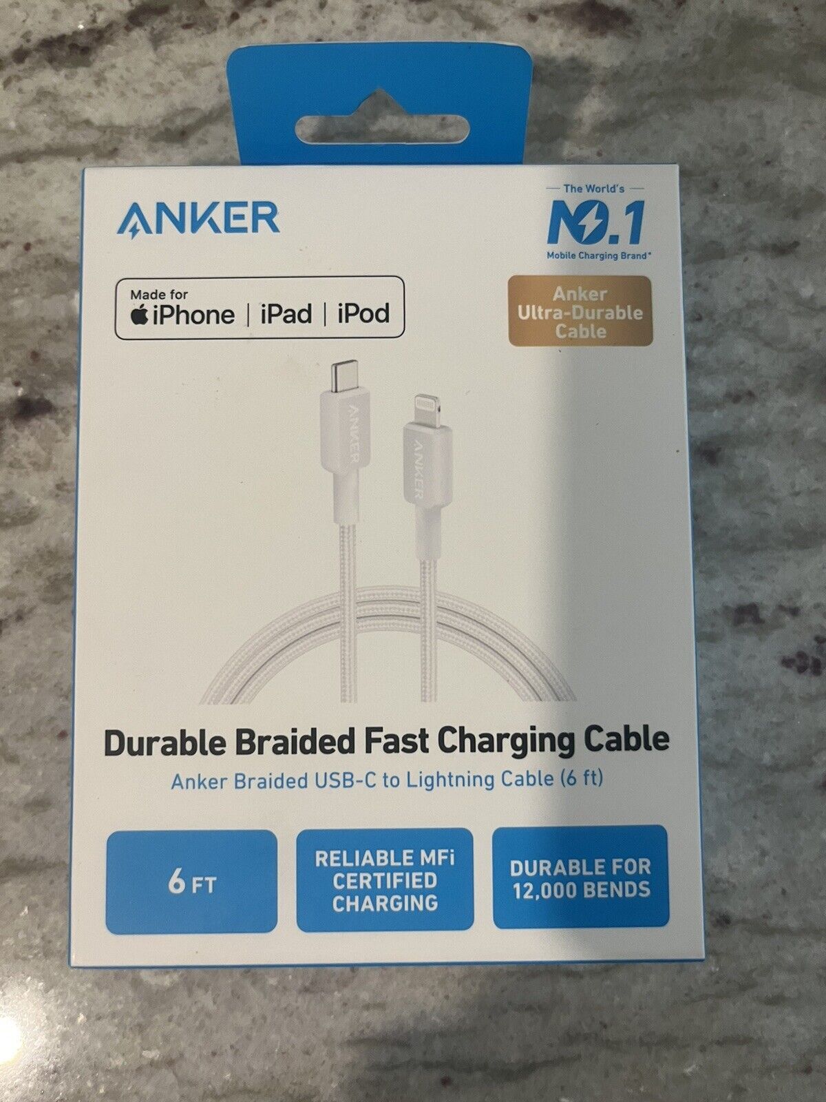 ANKER A81B6H21-1 6FT BRAIDED CABLE WHITE USB-C TO LIGHTNING