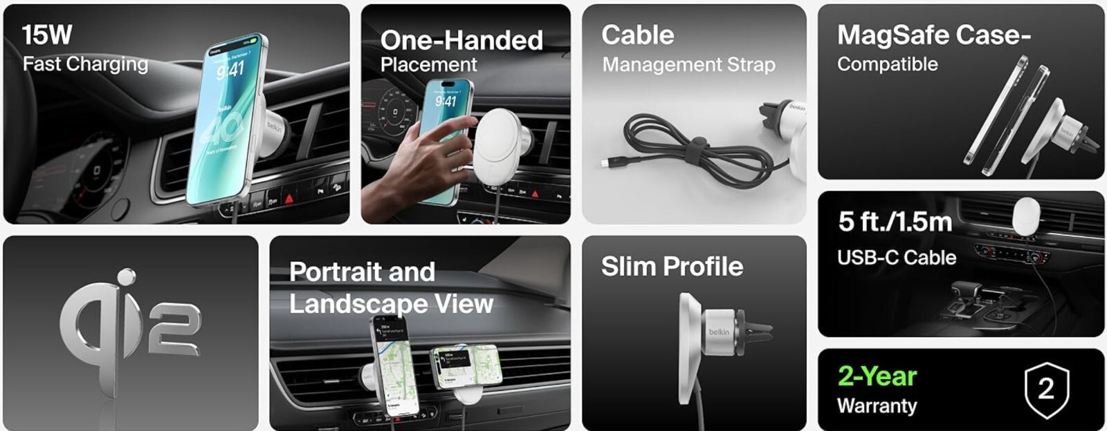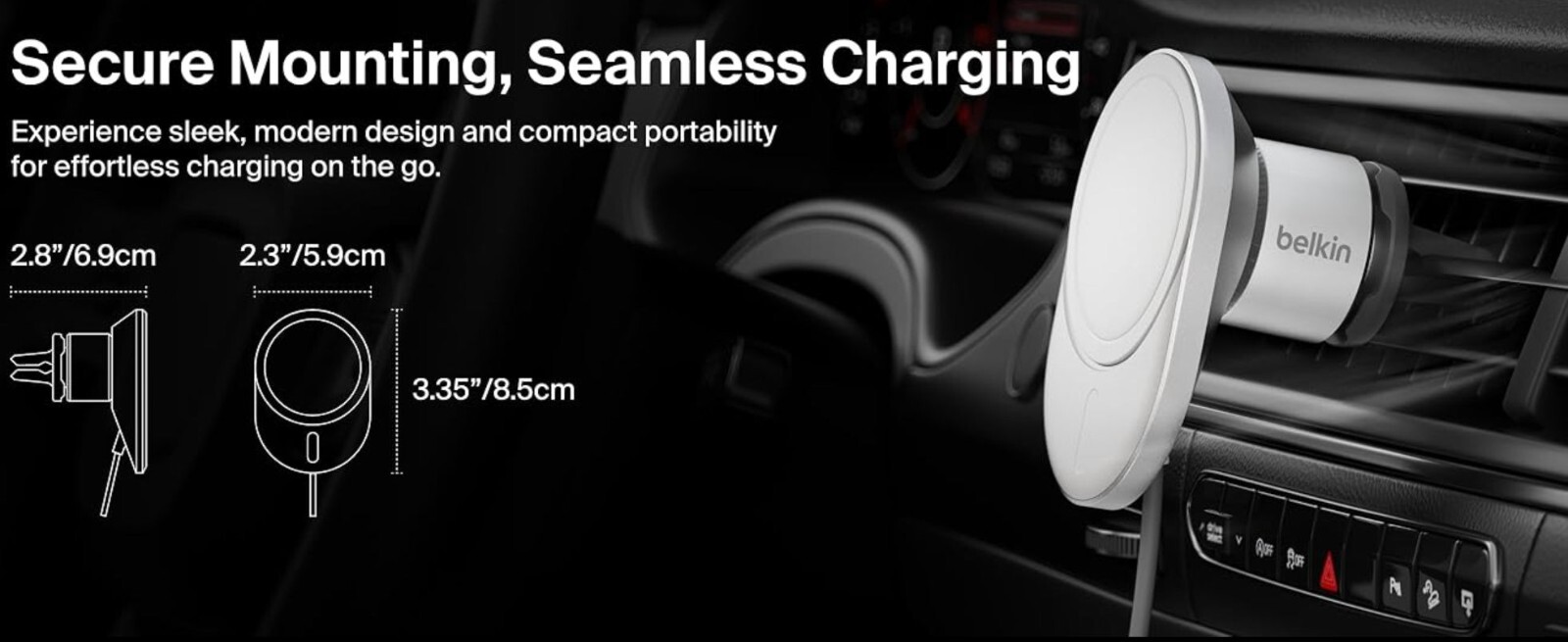 Belkin WIC008BTGR-V2 QI2 15W MAGNETIC WIRELESS CAR VENT MOUNT