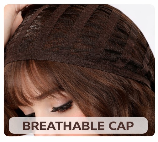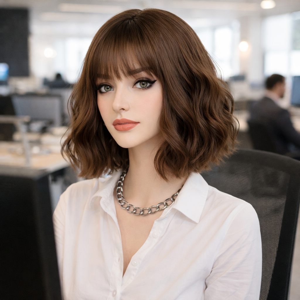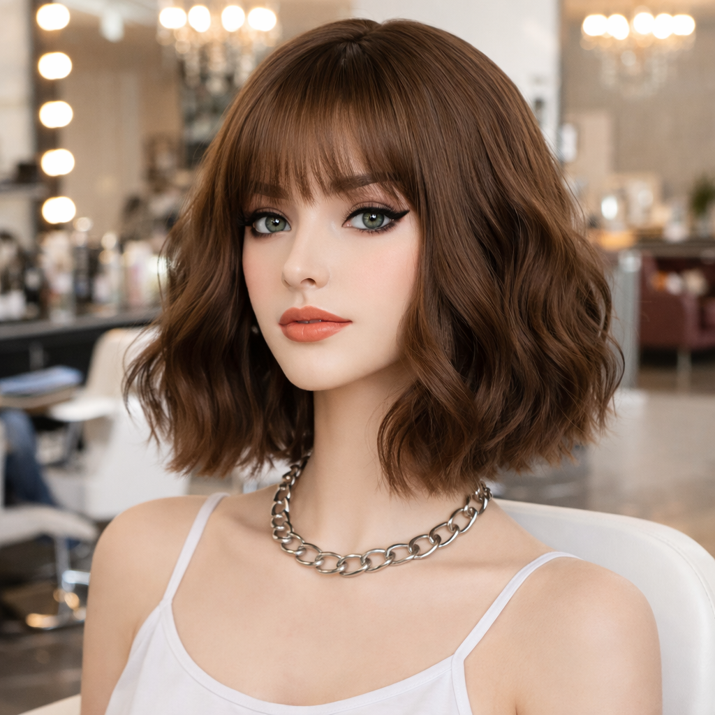 Bob Style Wig – Wavy Brown Hair with Bangs