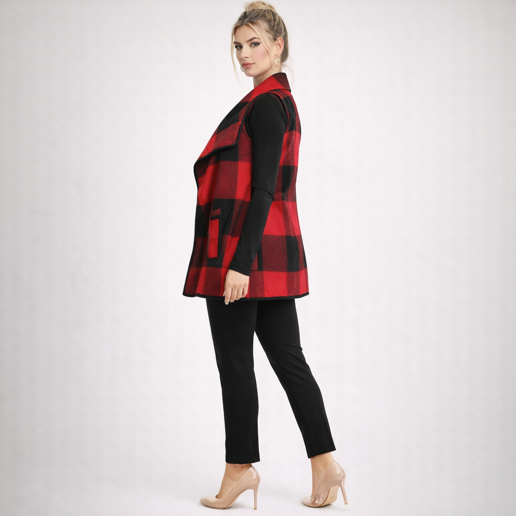 Women’s Buffalo Plaid Waterfall Cardigan Vest