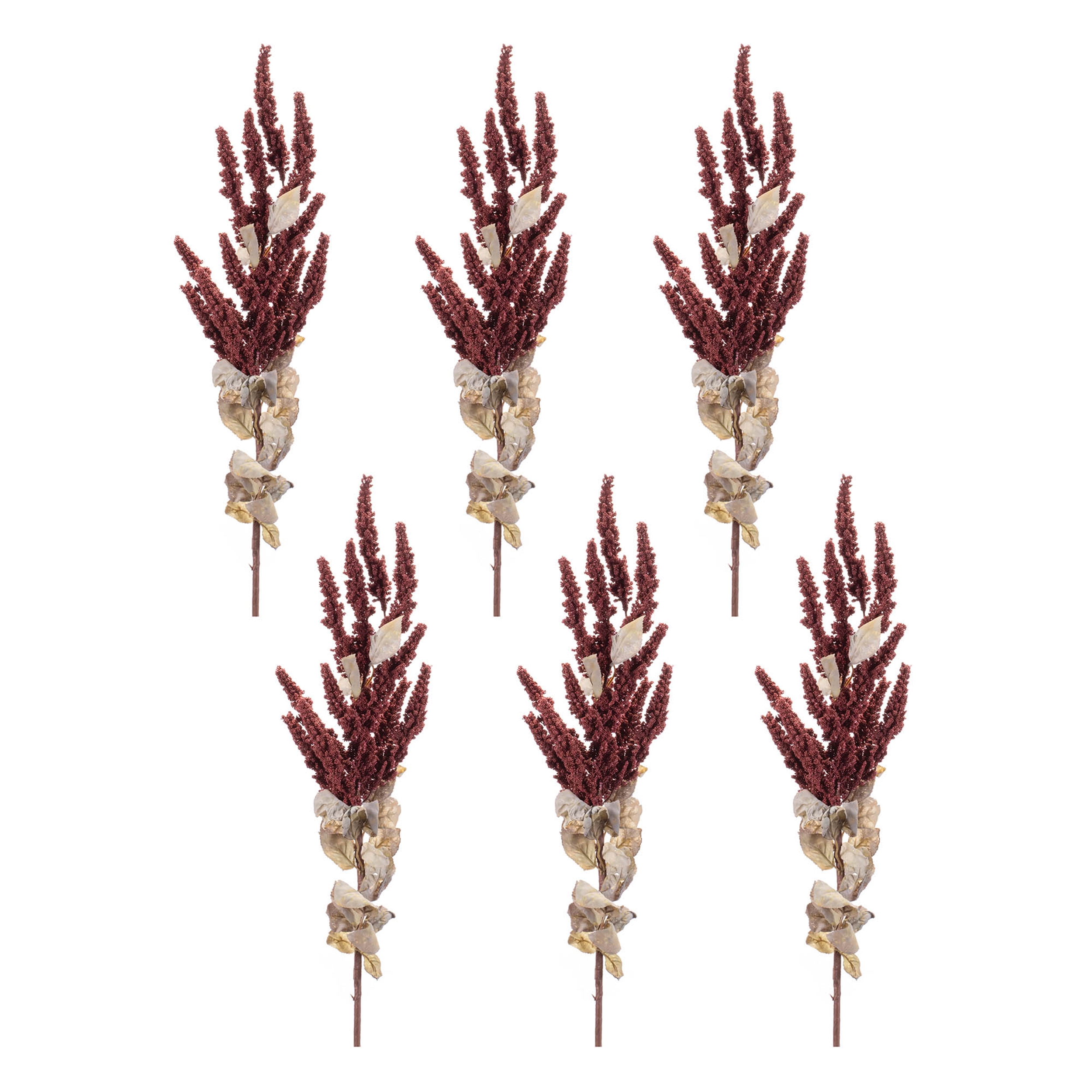 Bring the essence of fall into your home with the Fall Clustered Berry Stem Set. Featuring deep burgundy and beige tones, this stunning berry stem design is perfect for adding a natural touch to your seasonal decor. The clustered berry branches are mounted on wired stems, allowing for versatile displays and sturdy arrangements. Sold in a set of six matching pieces, you can easily place these stems into a tabletop or floor vase, or incorporate them into a harvest wreath or garland to elevate your fall decor.