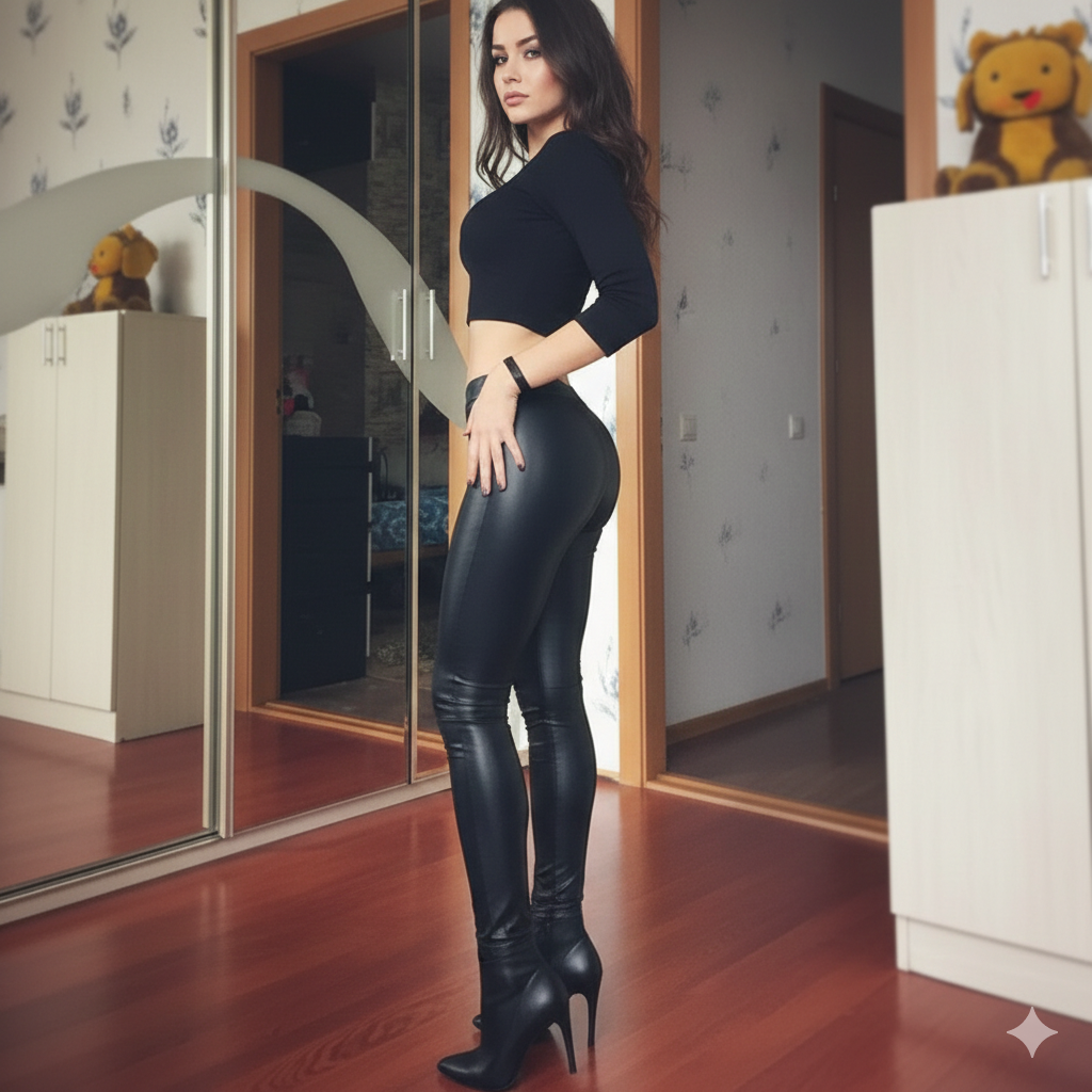 High Waist Faux Leather Leggings Shiny Stretchy Sexy Form Hugging