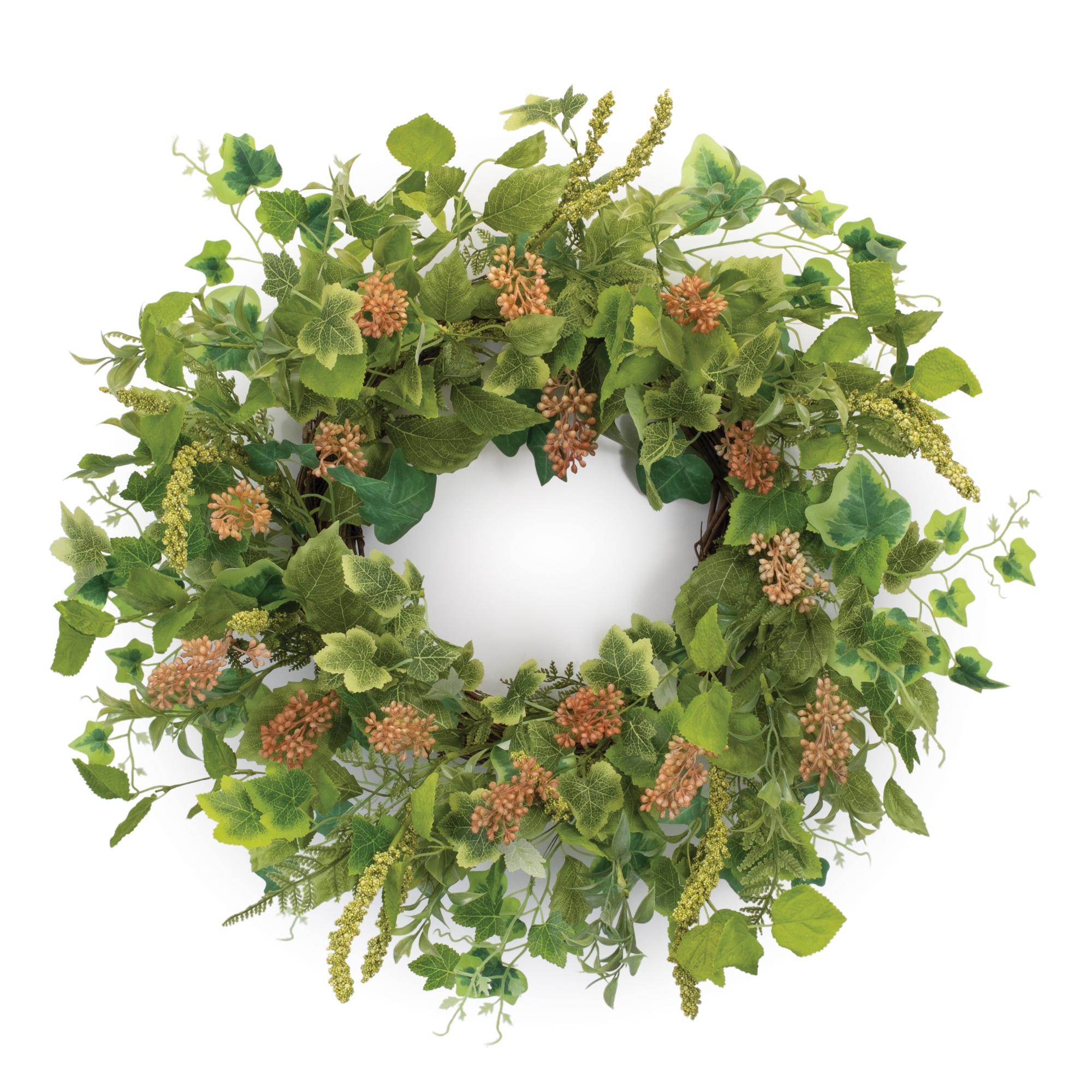 Welcome the beauty of nature into your home with the 24" Mixed Seeded Foliage Wreath. Designed to bring a fresh, inviting touch to any space, this lush green wreath features realistic seeded accents and a sturdy grapevine twig base. Crafted from high-quality polyester, foam, and plastic, it offers long-lasting beauty without maintenance. Perfect for adorning your front door, entryway, or interior spaces, this versatile wreath enhances your decor with timeless elegance. Measures 24.5 inches across when branches are extended and fluffed.