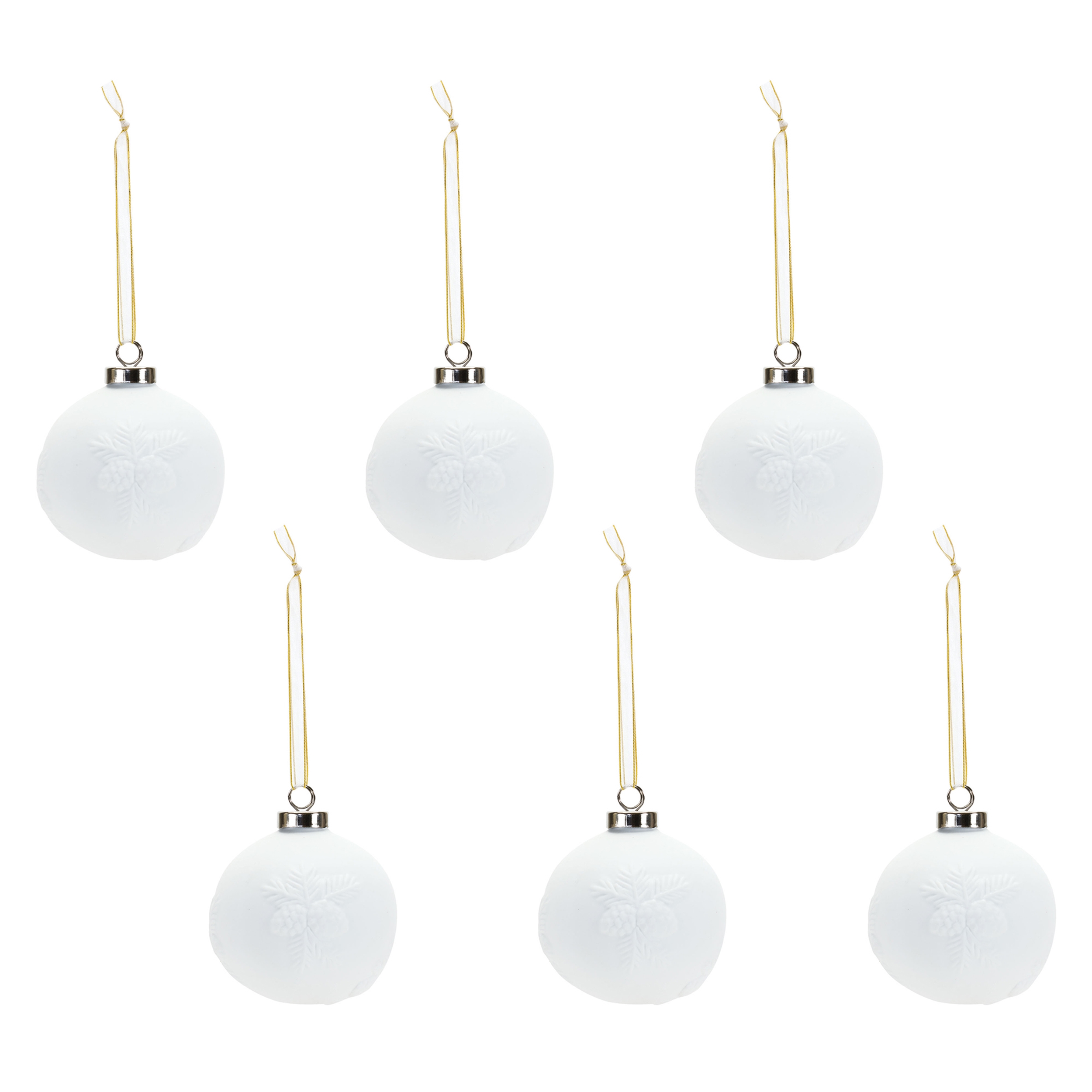 Elevate your holiday decor with the Porcelain Pine Cone Ball Ornament Set. This elegant set of six ornaments features a timeless combination of a classic ball design and a detailed raised pine branch motif. Crafted from high-quality porcelain, these beautiful ornaments offer lasting durability and a touch of winter charm. Perfect for adorning your Christmas tree, gifting to loved ones, or adding an extra layer of festive elegance to your home, these ornaments will be cherished for seasons to come.